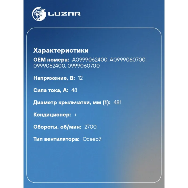 Электровентилятор охлаждения Mercedes-Benz GL (W166) (12-)/ML (W166) (11-)/GLE (W166) (15-) [M276] (с кожухом) Характеристики: Артикул: LFK 1527 OEM номера: A0999062400, A0999060700, 0999062400, 0999060700 Количество на автомобиль: 1 Напряжение, В: 12 Сила тока, А: 48 Диаметр крыльчатки, мм (1): 481 Кондиционер: + Обороты, об/мин: 2700 Тип вентилятора: осевой Диаметр крыльчатки, мм (2): - Мощность, Вт: 600 Сопутствующий товар: Радиаторы охлаждения: LRc 15165 Сопутствующий товар: Радиаторы кондиционера (конденсеры): LRAC 15165 Двигатель: [M276] Подходит для авто: Mercedes-Benz GLS (X166) (15-), M-Class III (W166) (11-), GL-Class II (X166) (12-), GLE (15-) Для проверки применяемости отправьте VIN автомобиля через вкладку "Есть вопросы о товаре?" Комплектация: Электровентилятор охлаждения - 1 шт Паспорт изделия - 1 шт Гарантия: от 1 года.