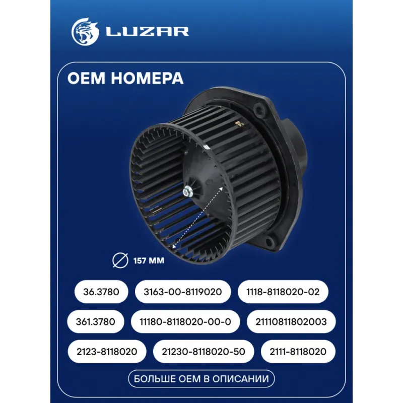 Электровентилятор отопителя для автомобилей Лада 2110, 2111, Chevrolet Niva 2123 (универсальный) (шарик. подшипники) Характеристики: Артикул: LFh 01230 OEM номера: 2123-8118020, 21230-8118020-50, 2111-8118020, 36.3780, 361.3780, 3163-00-8119020, 1118-8118020-02, 11180-8118020-00-0, 21110811802003, 8450051626, 11180811802000 Количество на автомобиль: 1 Подходящий разъем AIRLINE:: AECC206 Диаметр крыльчатки, мм: 157 Обороты, об/мин: 2800 Напряжение, В: 12 Сила тока, А: 20 Тип вентилятора: Центробежный Высота крыльчатки, мм: 75 Мощность, Вт: 240 Кондиционер: +/- Подходит для авто: ВАЗ 2111, 2112, Kalina (04-), 2110, 2111, 2112, 2123, Kalina (04-), Priora (07-) УАЗ Patriot (08-), Patriot (08-), 31631, 3163 (Patriot) (05-) Chevrolet Niva (02-) Для проверки применяемости отправьте VIN автомобиля через вкладку "Есть вопросы о товаре?" Комплектация: Электровентилятор отопителя - 1 шт Паспорт изделия - 1 шт Провод - 1 шт Гарантия: от 1 года.