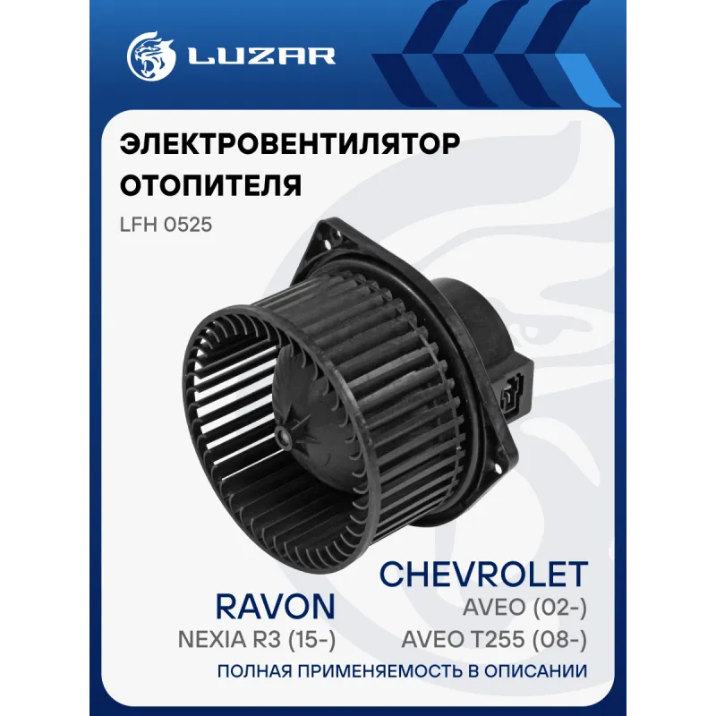 Электровентилятор отопителя для автомобилей Chevrolet Aveo (02-)/Aveo T255 (08-)/Ravon Nexia R3 (15-) A/C Характеристики: Артикул: LFh 0525 OEM номера: 95978693, 96539656 Количество на автомобиль: 1 Диаметр крыльчатки, мм: 148 Обороты, об/мин: 3200 Напряжение, В: 12 Сила тока, А: 18 Тип вентилятора: Центробежный Высота крыльчатки, мм: 70 Мощность, Вт: 216 Сопутствующий товар: Радиаторы отопителя: LRh CHAv05342 Сопутствующий товар: Резисторы нагрузочные: LFR 1751 Кондиционер: +/- Подходит для авто: Chevrolet Aveo T255 (08-), Aveo T200 (02-) Для проверки применяемости отправьте VIN автомобиля через вкладку "Есть вопросы о товаре?" Комплектация: Паспорт изделия - 1 шт Электровентилятор отопителя - 1 шт Гарантия: от 1 года.