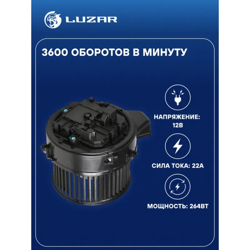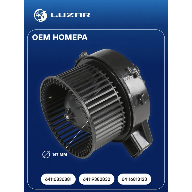 Электровентилятор отопителя для автомобилей BMW 5 (G30) (16-)/6 GT (G32) (17-)/7 (G11) (15-) Характеристики: Артикул: LFh 2603 OEM номера: 64116836881, 64119382832, 64116813123 Мощность, Вт: 264 Сила тока, А: 22 Диаметр крыльчатки, мм: 147 Обороты, об/мин: 3600 Высота крыльчатки, мм: 70 Напряжение, В: 12 Количество на автомобиль: 1 Тип вентилятора: центробежный Подходит для авто: BMW 8 G1x (22-), 5 G30 (16-), 7 G11 (15-), 8 G1x (22-), 6 GT G32 (17-) Для проверки применяемости отправьте VIN автомобиля через вкладку "Есть вопросы о товаре?" Комплектация: Электровентилятор отопителя - 1 шт Паспорт изделия - 1 шт Гарантия: от 1 года.