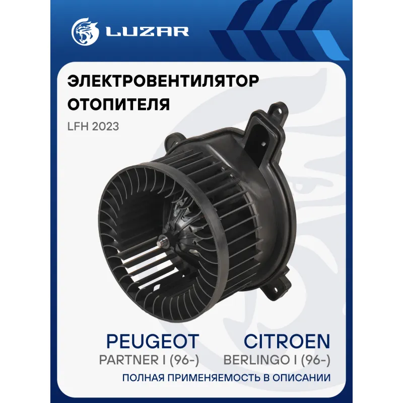 Электровентилятор отопителя для автомобилей Citroen Berlingo I (96-)/Peugeot Partner I (96-) A/C- (плоский разъем) Характеристики: Артикул: LFh 2023 OEM номера: 6441.95 Мощность, Вт: 228 Сила тока, А: 19 Диаметр крыльчатки, мм: 151 Обороты, об/мин: 3250 Высота крыльчатки, мм: 65 Тип вентилятора: центробежный Напряжение, В: 12 Количество на автомобиль: 1 Подходит для авто: Citroen Berlingo I (96-) Peugeot Partner (96-), 306 (97-), 306 (97-) Для проверки применяемости отправьте VIN автомобиля через вкладку "Есть вопросы о товаре?" Комплектация: Электровентилятор отопителя - 1 шт Паспорт изделия - 1 шт Провод с разъемом - 1 шт Гарантия: от 1 года.