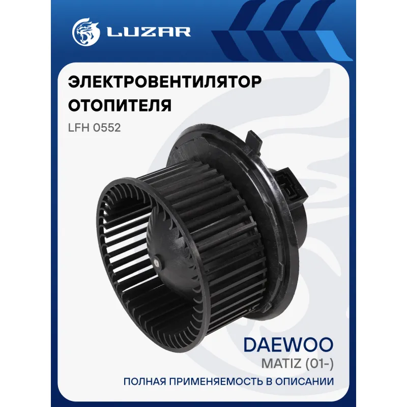Электровентилятор отопителя для автомобилей Daewoo Matiz (01-) Характеристики: Артикул: LFh 0552 OEM номера: 96279352 Количество на автомобиль: 1 Диаметр крыльчатки, мм: 146 Обороты, об/мин: 2660 Напряжение, В: 12 Сила тока, А: 8,5 Тип вентилятора: Центробежный Высота крыльчатки, мм: 65 Мощность, Вт: 102 Сопутствующий товар: Радиаторы отопителя: LRh DWMz98358 Кондиционер: +/- Подходит для авто: Chevrolet Spark (98-) Daewoo Matiz (01-) Для проверки применяемости отправьте VIN автомобиля через вкладку "Есть вопросы о товаре?" Комплектация: Электровентилятор отопителя - 1 шт Паспорт изделия - 1 шт Гарантия: от 1 года.