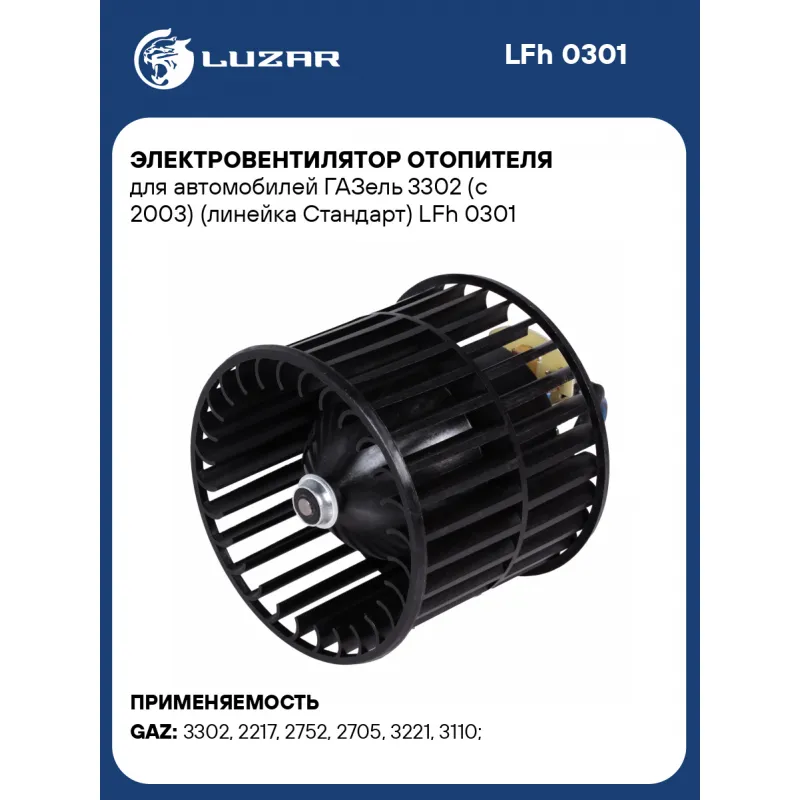 Электровентилятор отопителя для автомобилей ГАЗель 3302 (c 2003) (линейка Стандарт) Характеристики: Артикул: LFh 0301 OEM номера: 3302-8101080, 45.3730-10 Мощность, Вт: 240 Сила тока, А: 20 Диаметр крыльчатки, мм: 114 Обороты, об/мин: 3800 Высота крыльчатки, мм: 94 Тип вентилятора: центробежный Напряжение, В: 12 Количество на автомобиль: 1 Подходит для авто: ГАЗ 3302, 3302, 2217, 2217, 2752, 2752, 2705, 2705, 3221, 3221, 3110, 31105, 2752, 2705, 3221 Для проверки применяемости отправьте VIN автомобиля через вкладку "Есть вопросы о товаре?" Комплектация: Электровентилятор отопителя - 1 шт Паспорт изделия - 1 шт Гарантия: от 1 года.