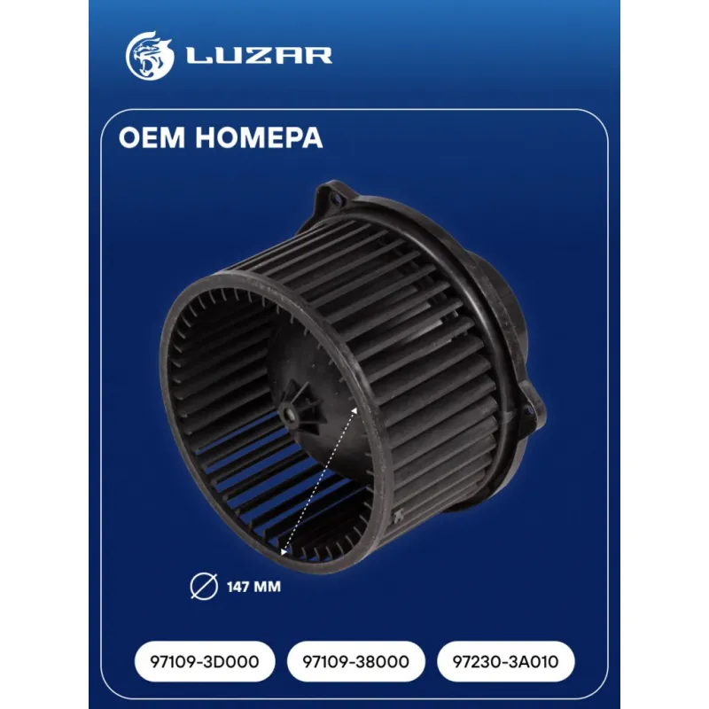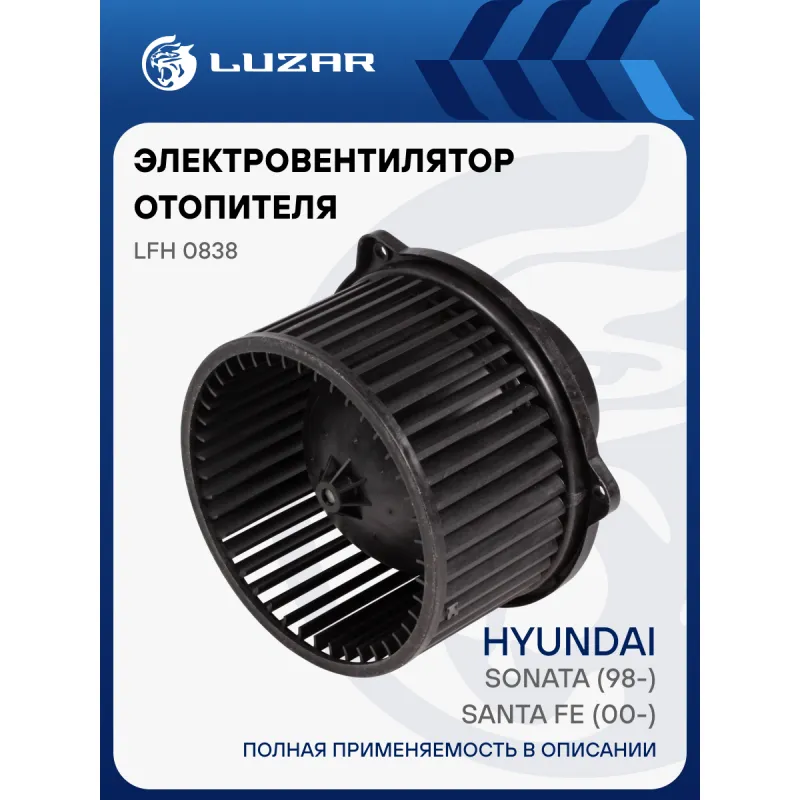 Электровентилятор отопителя для автомобилей Hyundai Sonata (98-)/Santa Fe (00-) Характеристики: Артикул: LFh 0838 OEM номера: 97109-3D000, 97109-38000, 97230-3A010 Количество на автомобиль: 1 Диаметр крыльчатки, мм: 147 Обороты, об/мин: 3150 Напряжение, В: 12 Сила тока, А: 20 Тип вентилятора: Центробежный Высота крыльчатки, мм: 75 Мощность, Вт: 240 Сопутствующий товар: Радиаторы отопителя: LRh HUSf00300; LRh HUSo98338 Сопутствующий товар: Резисторы нагрузочные: LFR 0807 Кондиционер: +/- Подходит для авто: Hyundai Sonata IV (EF) (98-), Santa Fe (00-), Trajet (00-), Terracan (01-) ТагАЗ Sonata (98-), Santa Fe (00-) Для проверки применяемости отправьте VIN автомобиля через вкладку "Есть вопросы о товаре?" Комплектация: Электровентилятор отопителя - 1 шт Паспорт изделия - 1 шт Гарантия: от 1 года.