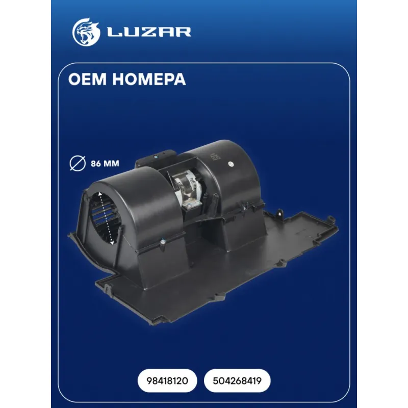 Электровентилятор отопителя для автомобилей Iveco Eurocargo (91-) I-III (до 2015 г.) Характеристики: Артикул: LFh 1601 OEM номера: 98418120, 504268419 Количество на автомобиль: 1 Диаметр крыльчатки, мм: 86 Обороты, об/мин: 4050 Напряжение, В: 24 Сила тока, А: 10,5 Тип вентилятора: центробежный Мощность, Вт: 252 Подходит для авто: Iveco EuroCargo (00-) Для проверки применяемости отправьте VIN автомобиля через вкладку "Есть вопросы о товаре?" Комплектация: Электровентилятор отопителя - 1 шт Паспорт изделия - 1 шт Гарантия: от 1 года.