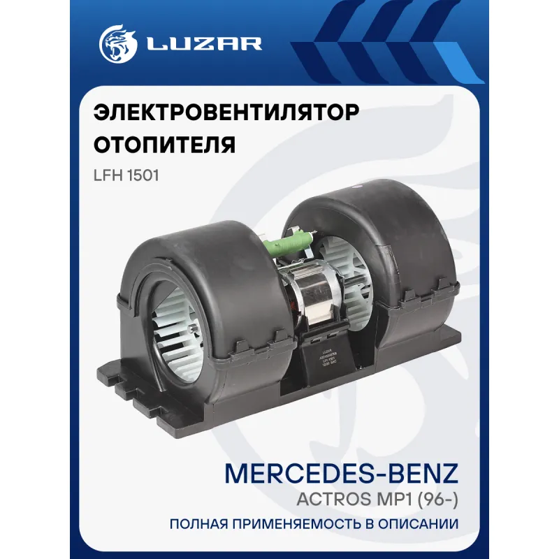 Электровентилятор отопителя для автомобилей Mercedes-Benz Actros MP1 (96-) (в корпусе) Характеристики: Артикул: LFh 1501 OEM номера: A 001 830 87 08, 001 830 87 08 Сопутствующий товар: Резисторы нагрузочные: LFR 2801 Количество на автомобиль: 1 Обороты, об/мин: 3100 Напряжение, В: 24 Сила тока, А: 10,5 Тип вентилятора: центробежный Мощность, Вт: 252 Резистор: установлен Подходит для авто: Mercedes-Benz Actros (96-) Для проверки применяемости отправьте VIN автомобиля через вкладку "Есть вопросы о товаре?" Комплектация: Электровентилятор отопителя - 1 шт Паспорт изделия - 1 шт Гарантия: от 1 года.
