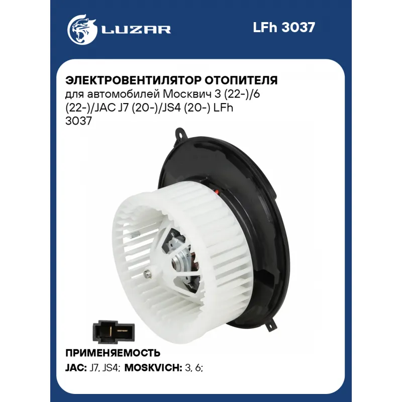 Электровентилятор отопителя для автомобилей Москвич 3 (22-)/6 (22-)/JAC J7 (20-)/JS4 (20-) Характеристики: Артикул: LFh 3037 OEM номера: 8126100U3400F131 Мощность, Вт: 300 Сила тока, А: 25 Диаметр крыльчатки, мм: 154 Обороты, об/мин: 3800 Высота крыльчатки, мм: 60 Напряжение, В: 12 Количество на автомобиль: 1 Тип вентилятора: центробежный Подходит для авто: JAC J7 (20-), JS4 (20-) MOSKVICH 3 (22-), 6 (22-) Для проверки применяемости отправьте VIN автомобиля через вкладку "Есть вопросы о товаре?" Комплектация: Электровентилятор отопителя - 1 шт Паспорт изделия - 1 шт Гарантия: от 1 года.
