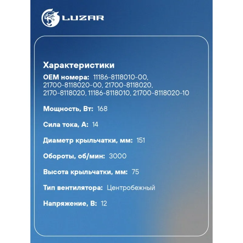 | LUZAR LFH01182 1 шт. | 1 день | 155.60 р. | |