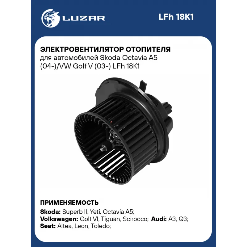 Электровентилятор отопителя для автомобилей Skoda Octavia A5 (04-)/VW Golf V (03-) Характеристики: Артикул: LFh 18K1 OEM номера: 1K1 819 015, 1K1 819 015 E, 1K1 819 015 C, 1K1 819 015 D, 1K1 819 015 F Обороты, об/мин: 3500 Напряжение, В: 12 Количество на автомобиль: 1 Диаметр крыльчатки, мм: 149,5 Сила тока, А: 21 Тип вентилятора: Центробежный Высота крыльчатки, мм: 69 Мощность, Вт: 252 Сопутствующий товар: Радиаторы отопителя: LRh 0551; LRh 181DP; LRh 1831; LRh 1835; LRh 18N5; LRh HUAc94320 Сопутствующий товар: Резисторы нагрузочные: LFR 0991; LFR 1801; LFR 1810; LFR 1855; LFR 18J0 Кондиционер: +/- Подходит для авто: Skoda Superb II (08-), Yeti (09-), Octavia A5 (04-), Yeti (09-) Volkswagen Golf VI (08-), Tiguan (08-), Scirocco (08-), Caddy (04-), Eos (06-), Golf V (03-), Golf VI (08-), Jetta (05-), Passat B6 (05-), Touran (03-), CC (08-) Audi A3 (03-), Q3 (11-), Q3 (11-) Seat Altea (04-), Leon (05-), Toledo (04-) Для проверки применяемости отправьте VIN автомобиля через вкладку "Есть вопросы о товаре?" Комплектация: Электровентилятор отопителя - 1 шт Паспорт изделия - 1 шт Гарантия: от 1 года.