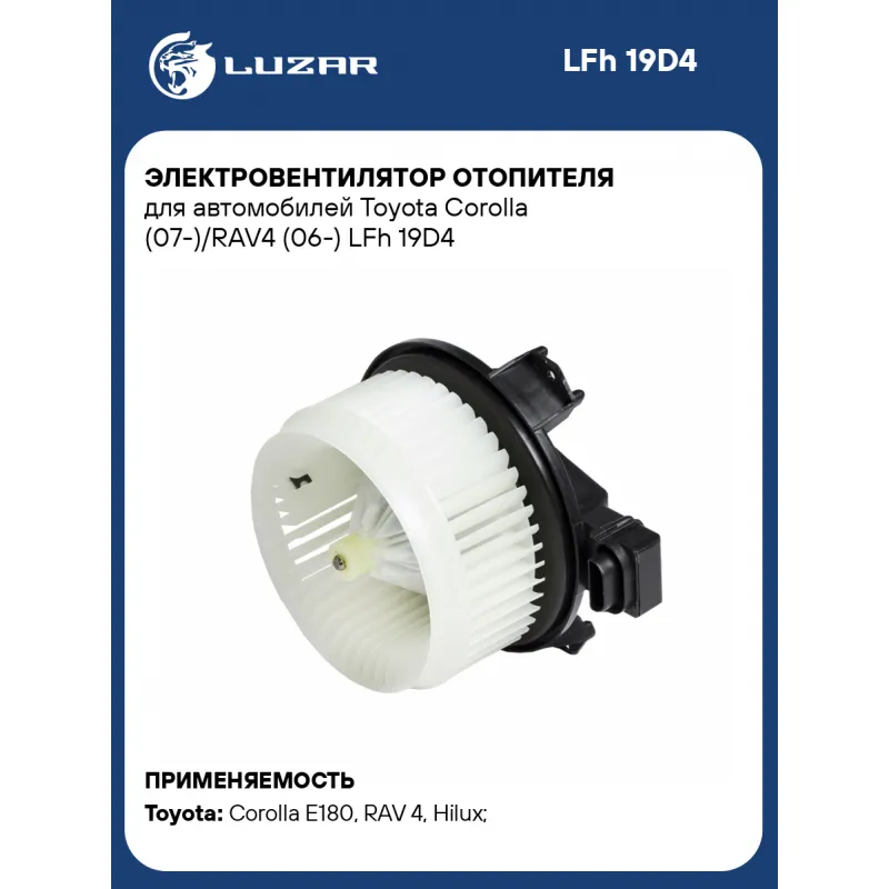 Электровентилятор отопителя для автомобилей Toyota Corolla (07-)/RAV4 (06-) Характеристики: Артикул: LFh 19D4 OEM номера: 8710342090, 2727005151, 8710302470, 8710302140, 8710302120, 8710302200, 8710302280, 8710302380 Количество на автомобиль: 1 Диаметр крыльчатки, мм: 153 Обороты, об/мин: 2650 Напряжение, В: 12 Сила тока, А: 14 Тип вентилятора: Центробежный Высота крыльчатки, мм: 70 Мощность, Вт: 168 Сопутствующий товар: Радиаторы отопителя: LRh 1914 Сопутствующий товар: Резисторы нагрузочные: LFR 1920 Кондиционер: +/- Подходит для авто: Toyota Corolla E180 (13-), RAV 4 (06-), RAV 4 (13-), Hilux (05-), Auris (06-), Corolla E150 (06-), Avensis (09-), RAV 4 (06-) Для проверки применяемости отправьте VIN автомобиля через вкладку "Есть вопросы о товаре?" Комплектация: Электровентилятор отопителя - 1 шт Паспорт изделия - 1 шт Гарантия: от 1 года.