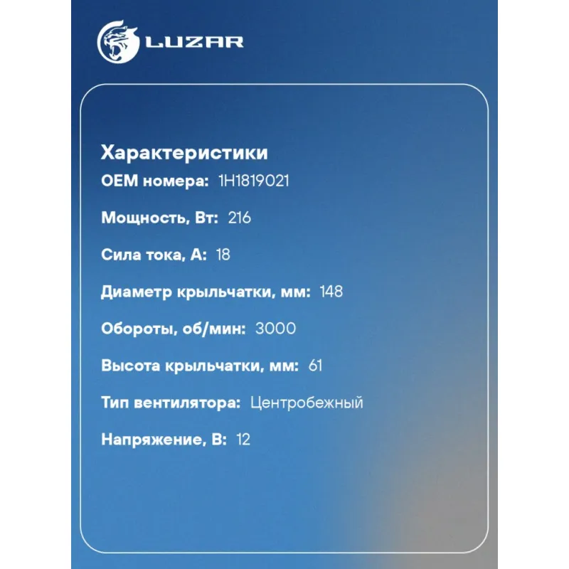 Электровентилятор отопителя для автомобилей VW Golf III (91-) A/C- Характеристики: Артикул: LFh 1808 OEM номера: 1H1819021 Количество на автомобиль: 1 Диаметр крыльчатки, мм: 148 Обороты, об/мин: 3000 Напряжение, В: 12 Сила тока, А: 18 Тип вентилятора: центробежный Высота крыльчатки, мм: 61 Мощность, Вт: 216 Кондиционер: для а/м без кондиционера Подходит для авто: Volkswagen Golf III (91-), Vento (92-) Для проверки применяемости отправьте VIN автомобиля через вкладку "Есть вопросы о товаре?" Комплектация: Электровентилятор отопителя - 1 шт Паспорт изделия - 1 шт Гарантия: от 1 года.