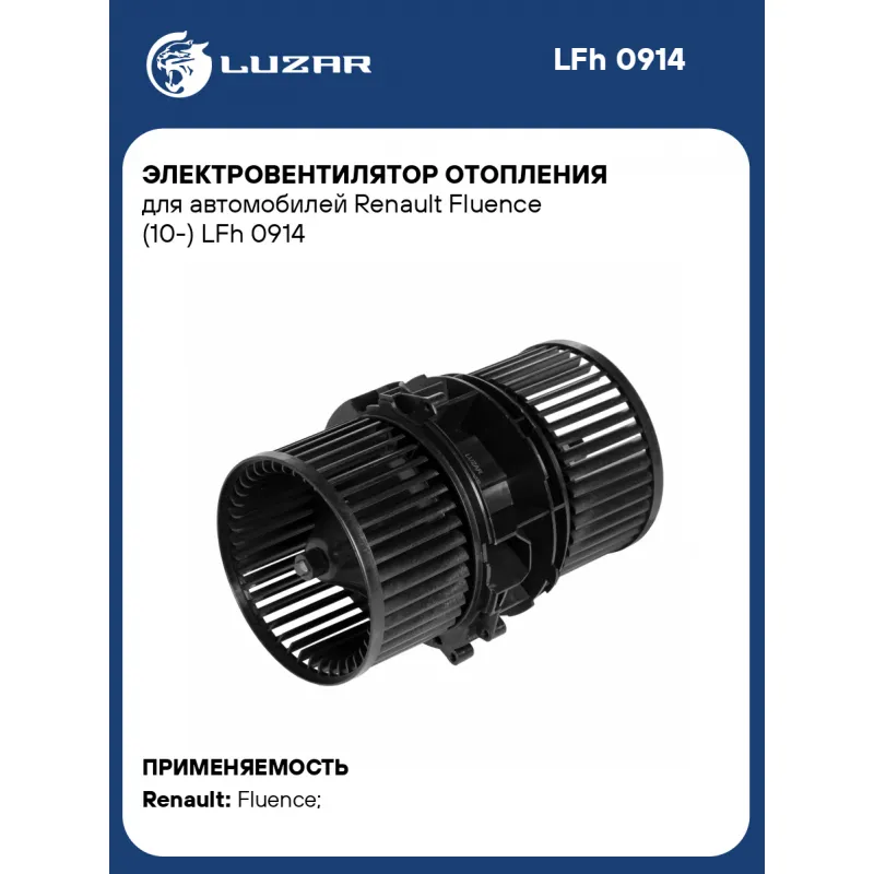Электровентилятор отопления для автомобилей Renault Fluence (10-) Характеристики: Артикул: LFh 0914 OEM номера: 272104377R Напряжение, В: 12 Количество на автомобиль: 1 Диаметр крыльчатки, мм: 122 Обороты, об/мин: 3450 Сила тока, А: 17 Тип вентилятора: центробежный Высота крыльчатки, мм: 65 Мощность, Вт: 204 Сопутствующий товар: Радиаторы отопителя: LRh 0902 Сопутствующий товар: Резисторы нагрузочные: LFR 1408 Подходит для авто: Renault Fluence (10-) Для проверки применяемости отправьте VIN автомобиля через вкладку "Есть вопросы о товаре?" Комплектация: Электровентилятор отопителя - 1 шт Паспорт изделия - 1 шт Гарантия: от 1 года.