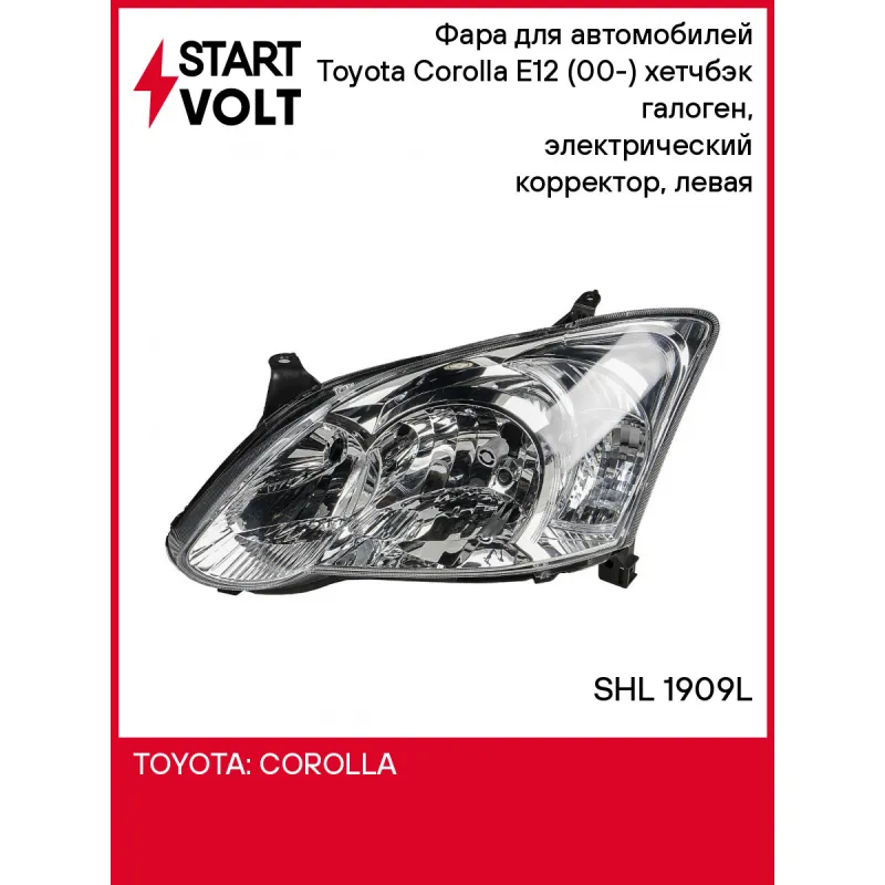 Фара для автомобилей Toyota Corolla E12 (00-) хетчбэк (головного света ) галоген, электрический корректор, левая Характеристики: Артикул: SHL 1909L OEM номера: 81170-02380 Напряжение: 12В Сторона установки: Слева Тип осветительного прибора: Галоген Тип лампы/ламп: H7/H7/PY21W/W5W Оснащение (корректор): Электрический Функция осветительного прибора (ДХО/без ДХО): без ДХО Количество на автомобиль: 1 Сторона движения: правостороннее Комплектация: Фара в сборе - 1 шт Паспорт изделия - 1 шт Гарантия: от 1 года.