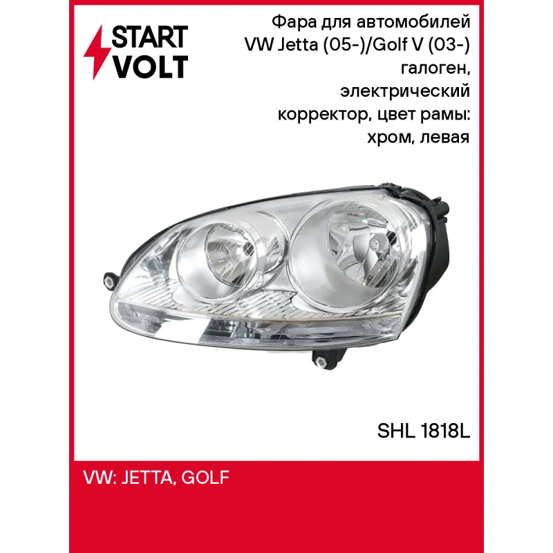 Фара для автомобилей VW Jetta (05-)/Golf V (03-) (головного света) галоген, электрический корректор, цвет рамы: хром, левая Характеристики: Артикул: SHL 1818L OEM номера: 1K6941005P, 1K6 941 029 P, 1K6941005N, 1K6941005R Напряжение: 12В Сторона установки: Слева Тип осветительного прибора: Галоген Тип лампы/ламп: H7/H7/PY21W/W5W Оснащение (корректор): Электрический Функция осветительного прибора (ДХО/без ДХО): без ДХО Количество на автомобиль: 1 Сторона движения: правостороннее Комплектация: Фара в сборе - 1 шт Паспорт изделия - 1 шт Гарантия: от 1 года.