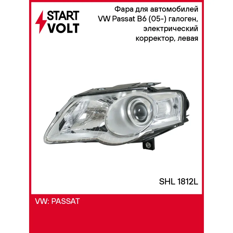 Фара для автомобилей VW Passat B6 (05-) (головного света) галоген, электрический корректор, левая Характеристики: Артикул: SHL 1812L OEM номера: 3C0941005J, 3C0 941 005 AA, 3C0 941 005, 3C0941005C, 3C0941005M Напряжение: 12В Сторона установки: Слева Тип осветительного прибора: Галоген Тип лампы/ламп: H7/H7/W5W Оснащение (коррект... Читать полностью →