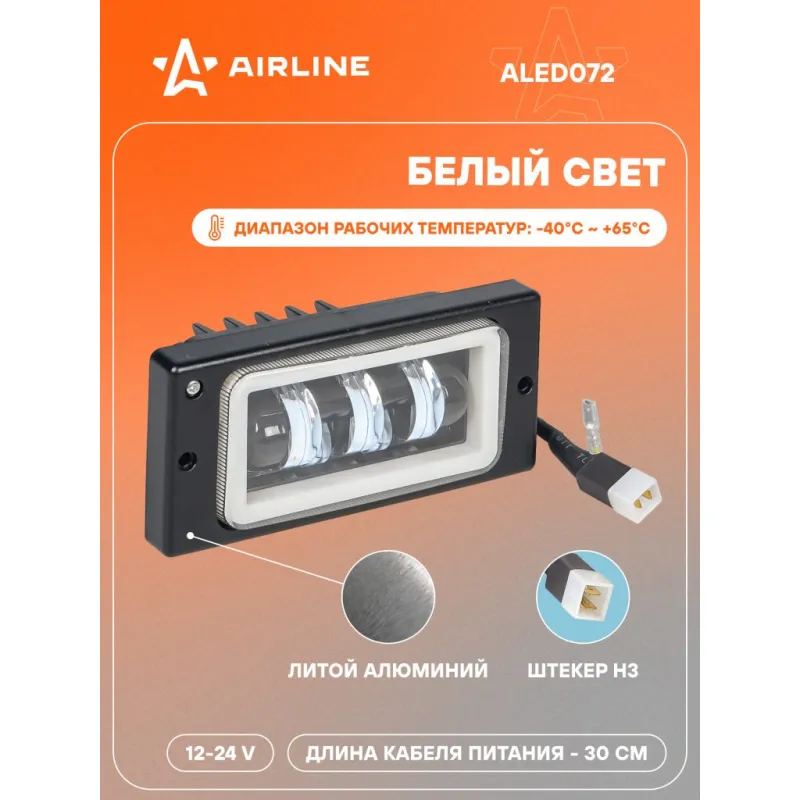 Фары противотуманные светодиодные PRO для Лада 2110-2115, КАМАЗ, 52Вт (26Вт x 2), H3, Белый + Обод, 174x85x60 мм, регулируемая СТГ, комплект 2 шт. Описание: Противотуманные фары с разъемом H3 и регулируемой световой границей обеспечивают мощное и равномерное освещение дорожного полотна, что делает их идеальным выбором для использования в условиях ограниченной видимости, включая ночное время суток и неблагоприятные погодные условия. Регулируемая световая граница позволяет направлять световой поток на дорогу, исключая ослепление водителей встречного транспорта, что способствует повышению безопасности участников дорожного движения. ПРИМЕНЯЕМОСТЬ: ПТФ для Lada: ВАЗ 2110; ВАЗ 2111; ВАЗ 2112; ВАЗ 2113; ВАЗ 2114; ВАЗ 2115; КАМАЗ. Особенностью данной фары является наличие светодиодного обода, выполняющего функцию дневных ходовых огней (ДХО). ДХО повышают заметность автомобиля для других участников дорожного движения, обеспечивая дополнительную безопасность при движении в дневное время суток. Величина светового потока комплекта составляет 4460Лм, что достигается благодаря использованию 30 светодиодов CREE 2525 мощностью по 1.44Вт каждый. Номинальная мощность комплекта составляет 44Вт, рабочее напряжение – 12/24В. Цветовая температура 6500К создаёт яркий белый свет, приближенный к дневному освещению. Светодиоды обладают увеличенным ресурсом до 50000 часов работы, а электрическая схема оснащена ограничением тока и защитой от обратного напряжения, что повышает надёжность эксплуатации устройства. Фары оснащены алюминиевым корпусом с объёмным радиатором и теплопроводящей печатной платой с термоинтерфейсом, которые эффективно охлаждают светодиоды и продлевают срок службы устройства. Корпус устойчив к коррозии, механическим повреждениям и температурным воздействиям, а класс влагозащиты IP67 гарантирует полную водонепроницаемость и защиту от пыли. Совместимость данной запчасти (туманки, ДХО, ПТФ) представлена исключительно в справочных целях. Данные светодиодные ПТФ могут не соответствовать стандартам для использования на дорогах общего пользования. Характеристики: Артикул: ALED072 OEM номера: 2110374301003, 2110374301001, 21103743010 Величина свет. потока комплекта, Лм: 4460 Тип крепления: Оригинальные Напряжение, В: 12/24 Форма фары: Прямоугольная Форма луча: Четкая световая граница Класс влагозащиты: IP67 Исполнение штекера: H3, открытый конец кабеля Температура свечения, К: 6500 Минимальная рабочая температура, °C: -40 Максимальная рабочая температура, °C: 65 Факт. потребляемый ток при 12В, А: 1.8 Факт. потребляемый ток при 24В, А: 0.9 Комплектация: Фара светодиодная - 2 шт Руководство по эксплуатации - 1 шт Гарантийный талон - 1 шт Упаковочная коробка - 1 шт Гарантия: от 1 года.