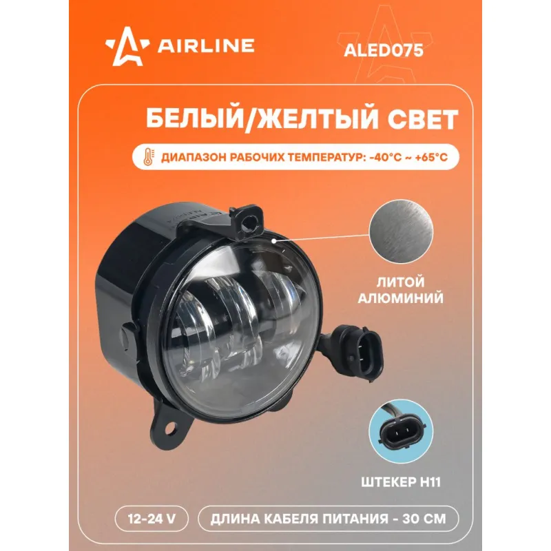 Фары противотуманные светодиодные для Лада Priora, ГАЗ, Chevrolet Niva, 44Вт (22Вт x 2), H11, Белый/Желтый, D-90 мм, регулируемая СТГ, комплект 2 шт. Описание: Противотуманные фары с разъемом H11 и регулируемой световой границей обеспечивают мощное и равномерное освещение дорожного полотна, что делает их идеальным выбором для использования в условиях ограниченной видимости, включая ночное время суток и неблагоприятные погодные условия. Регулируемая световая граница позволяет направлять световой поток на дорогу, исключая ослепление водителей встречного транспорта, что способствует повышению безопасности участников дорожного движения. ПРИМЕНЯЕМОСТЬ: ПТФ для Lada: Chevrolet Niva (ВАЗ 2123); Priora седан (ВАЗ 2170); Priora универсал (ВАЗ 2171); Priora хэтчбек (ВАЗ 2172). ГАЗ: Газель Бизнес; Газель Некст. Фары оснащены двумя режимами свечения: белым и жёлтым светом. Переключение между режимами осуществляется путём быстрого включения и выключения фар. Белый свет обеспечивает отличную видимость в нормальных условиях, а жёлтый свет обладает минимальным рассеиванием и высокой проникающей способностью, что делает его оптимальным для использования в тумане, дожде или снегопаде. Величина светового потока комплекта составляет 4460Лм в белом режиме, 2480Лм в желтом, что достигается благодаря использованию 30 светодиодов CREE 2525 мощностью по 1.44Вт каждый. Цветовая температура в белом режиме составляет 6500К, создавая яркий свет, приближенный к дневному, а в желтом 2300К. Номинальная мощность комплекта из двух ПТФ составляет 44Вт, рабочее напряжение – 12/24В. Светодиоды обладают увеличенным ресурсом до 50000 часов работы, а электрическая схема оснащена ограничением тока и защитой от обратного напряжения, что повышает надёжность эксплуатации устройства. Фары оснащены алюминиевым корпусом с объёмным радиатором и теплопроводящей печатной платой с термоинтерфейсом, которые эффективно охлаждают светодиоды и продлевают срок службы устройства. Корпус устойчив к коррозии, механическим повреждениям и температурным воздействиям, а класс влагозащиты IP67 гарантирует полную водонепроницаемость и защиту от пыли. Совместимость данной запчасти (туманки, ДХО, ПТФ) представлена исключительно в справочных целях. Данные светодиодные ПТФ могут не соответствовать стандартам для использования на дорогах общего пользования. Характеристики: Артикул: ALED075 OEM номера: 21700374301110, 21700374301050, 21700374301000 Величина свет. потока комплекта, Лм: 4460, 2480 Тип крепления: Оригинальные Напряжение, В: 12/24 Форма фары: Круглая Форма луча: Четкая световая граница Класс влагозащиты: IP67 Исполнение штекера: H11 Температура свечения, К: 6500, 2300 Минимальная рабочая температура, °C: -40 Максимальная рабочая температура, °C: 65 Факт. потребляемый ток при 12В, А: 1.8 Факт. потребляемый ток при 24В, А: 1.3 Комплектация: Фара светодиодная - 2 шт Руководство по эксплуатации - 1 шт Гарантийный талон - 1 шт Упаковочная коробка - 1 шт Гарантия: от 1 года.