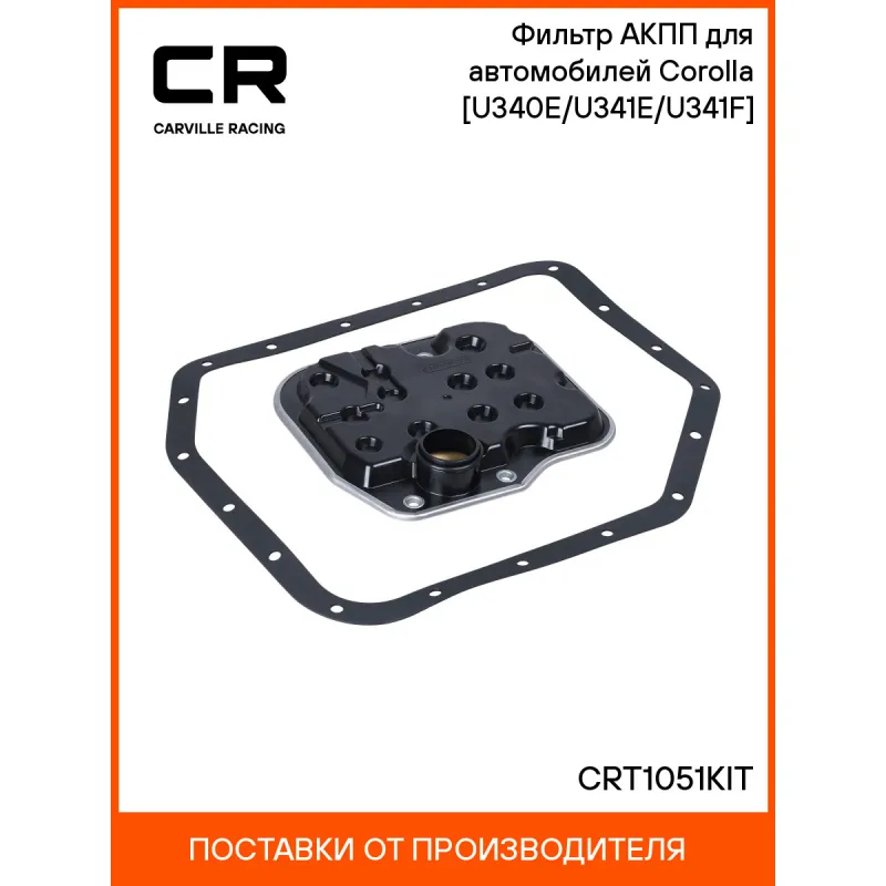 Фильтр АКПП для автомобилей Corolla (06-) [U340E/U341E/U341F] Характеристики: Артикул: CRT1051KIT OEM номера: 35330-0W020, 35330-0W021, 35330-20020, 35168-52020, 35168-52020 S1, 35330-0W020 S1, 35330-0W021 S1, 35330-20020 S1 Ширина, мм: 168,3 Длина, мм: 182,8 Высота, мм: 37,5 акпп: U340E/ U341E/ U341F Количество на автомобиль: 1... Читать полностью →