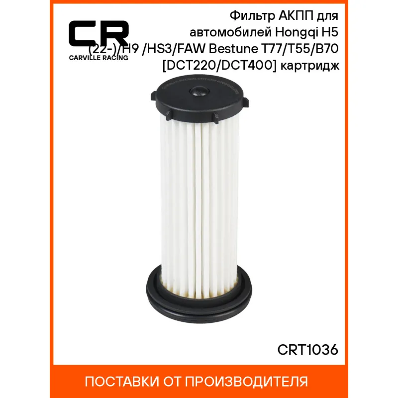 Фильтр АКПП для автомобилей Hongqi H5 (22-)/H9 (20-)/HS3/FAW Bestune T77/T55/B70 [DCT220/DCT400] картридж Характеристики: Артикул: CRT1036 OEM номера: 1704755A5K Внешний диаметр, мм: 53.6 Высота, мм: 117.7 акпп: DCT220/ DCT400 Внешний диаметр 1, мм: 13.8 Количество на автомобиль: 1 Комплектация: Фильтр АКПП - 1 шт Кольцо упло... Читать полностью →