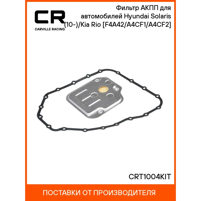 Фильтр АКПП для автомобилей Hyundai Solaris (10-)/Kia Rio (11-) [F4A42/A4CF1/A4CF2] Характеристики: Артикул: CRT1004KIT OEM номера: 46321-23001, 46321-23000 Ширина, мм: 143 Длина, мм: 149 Высота, мм: 33 акпп: F4A42, A4CF1/2 Количество на автомобиль: 1 Комплектация: Фильтр АКПП - 1 шт Прокладка - 1 шт Гарантия: от 1 года.