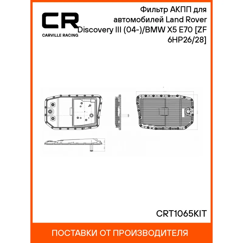 Фильтр АКПП для автомобилей Land Rover Discovery III (04-)/BMW X5 E70 (06-) [ZF 6HP26/28] Характеристики: Артикул: CRT1065KIT OEM номера: 2 333 903, 24 11 0 403 404, 24 11 7 519 352, 24 11 7 522 923, 24 11 7 571 227, 24 15 2 333 903, 02C2C-38963, 45280-49000, 24 11 0 403 404, 24 11 7 519 352, 24 11 7 522 923, 24 11 7 571 227, 24 15 2 333 903, 3Z0321359, 4G43-42-10273, LR007474 Ширина, мм: 302,5 Длина, мм: 497,2 Высота, мм: 110 акпп: ZF 6HP26/ 6HP28 Количество на автомобиль: 1 Комплектация: Картер масляный АКПП с фильтром - 1 шт Прокладка - 1 шт Болт - 13 шт Гарантия: от 1 года.
