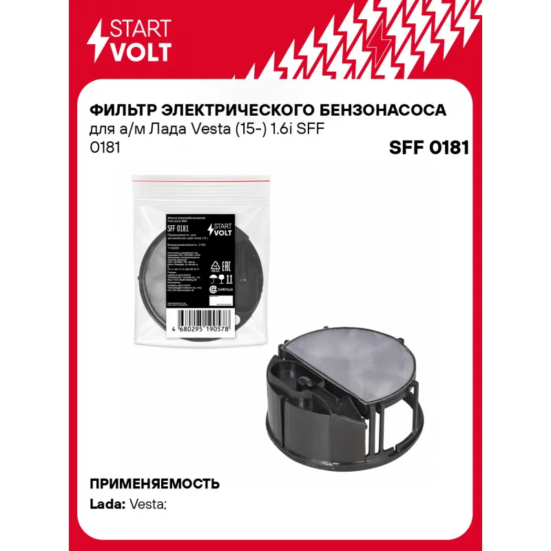 Фильтр электрического бензонасоса для а/м Лада Vesta (15-) 1.6i Описание: Фильтр (сетка) электрического бензонасоса для автомобилей HONDA VEZEL, LADA VESTA.. Сетчатый фильтр – применяется в модулях погружных электробензонасосов автомобильных двигателей с системой впрыска топлива. Предназначен для предварительной очистки топлива от сорных частиц и прочих загрязнений. Эффективная защита топливного насоса и форсунки от засорения. Фильтр грубой очистки состоит из пластикового каркаса с соединительным патрубком и сетчатого материала, натянутого на каркас. Если у вас есть вопросы по применяемости, мы всегда готовы помочь вам с подбором по VIN-НОМЕРУ ВАШЕГО АВТОМОБИЛЯ. Характеристики: Артикул: SFF 0181 OEM номера: 2180-1139200 Ширина, мм: 92 Длина, мм: 92 Тип: Сетчатый фильтр Количество на автомобиль: 1 Подходит для авто: ВАЗ Vesta (15-) Для проверки применяемости отправьте VIN автомобиля через вкладку "Есть вопросы о товаре?" Комплектация: Фильт-сетка топливный - 1 шт Гарантия: от 1 года.
