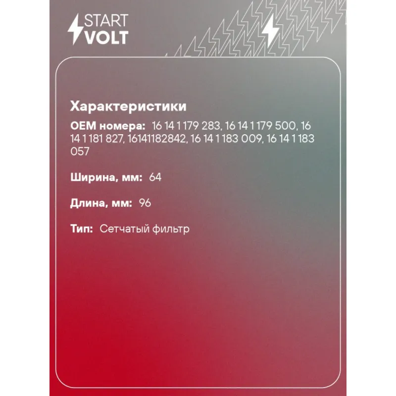 Фильтр электрического бензонасоса для автомобилей BMW 5 E34 (87-)/7 E32 (86-) (D=12мм) Описание: Фильтр (сетка) электрического бензонасоса для автомобилей BMW 3, 5, 7.. Сетчатый фильтр – применяется в модулях погружных электробензонасосов автомобильных двигателей с системой впрыска топлива. Предназначен для предварительной очистки топлива от сорных частиц и прочих загрязнений. Эффективная защита топливного насоса и форсунки от засорения. Фильтр грубой очистки состоит из пластикового каркаса с соединительным патрубком и сетчатого материала, натянутого на каркас. Если у вас есть вопросы по применяемости, мы всегда готовы помочь вам с подбором по VIN-НОМЕРУ ВАШЕГО АВТОМОБИЛЯ. Характеристики: Артикул: SFF 2625 OEM номера: 16 14 1 179 283, 16 14 1 179 500, 16 14 1 181 827, 16141182842, 16 14 1 183 009, 16 14 1 183 057 Количество на автомобиль: 1 Тип: Сетчатый фильтр Длина, мм: 96 Ширина, мм: 64 Диаметр, мм: 12 Комплектация: Фильтр-сетка - 1 шт Гарантия: от 1 года.