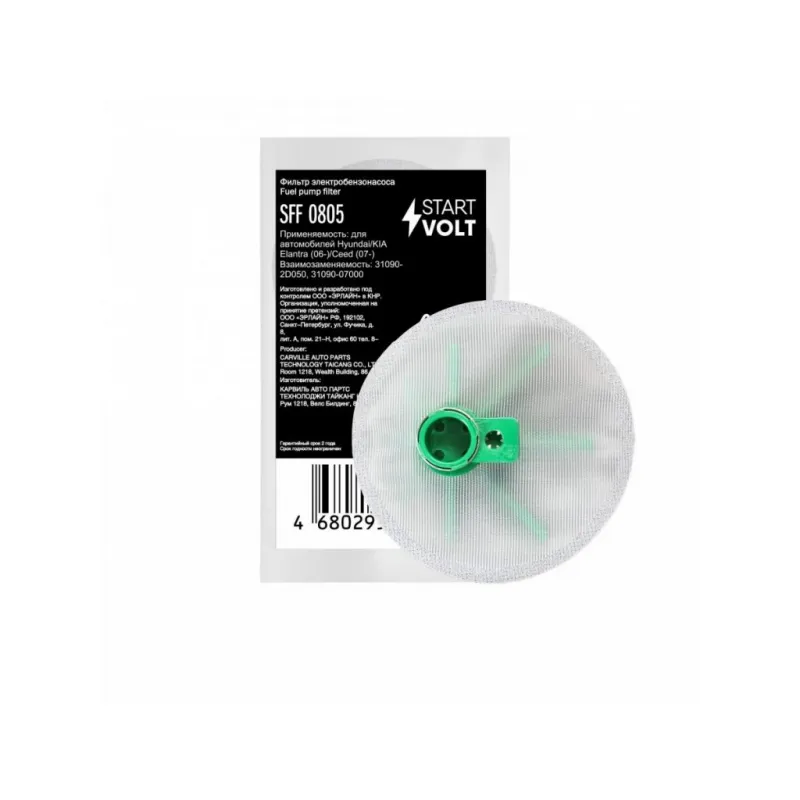 Фильтр электрического бензонасоса для автомобилей Hyundai Elantra (06-)/Kia Ceed (07-) 1.4i/1.6i/2.0i (D=11мм) Описание: Фильтр (сетка) электрического бензонасоса для автомобилей HYUNDAI ELANTRA, KIA CEED.. Сетчатый фильтр – применяется в модулях погружных электробензонасосов автомобильных двигателей с системой впрыска топлива. Предназначен для предварительной очистки топлива от сорных частиц и прочих загрязнений. Эффективная защита топливного насоса и форсунки от засорения. Фильтр грубой очистки состоит из пластикового каркаса с соединительным патрубком и сетчатого материала, натянутого на каркас. Если у вас есть вопросы по применяемости, мы всегда готовы помочь вам с подбором по VIN-НОМЕРУ ВАШЕГО АВТОМОБИЛЯ. Характеристики: Артикул: SFF 0805 OEM номера: 24447778, 31090-38000, 31090-43000, HS111002 Количество на автомобиль: 1 Тип: Сетчатый фильтр Диаметр, мм: 11 Комплектация: Фильтр-сетка - 1 шт Гарантия: от 1 года.