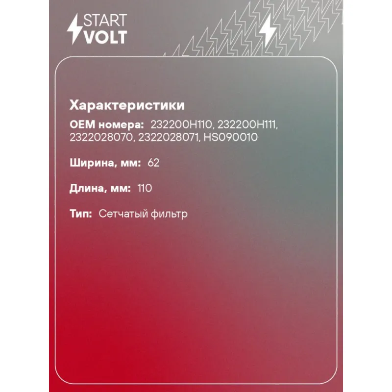 | Количество на автомобиль | 1 |