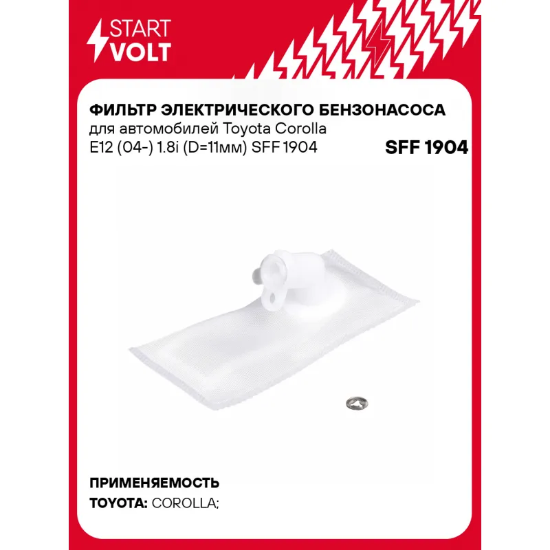 Фильтр электрического бензонасоса для автомобилей Toyota Corolla E12 (04-) 1.8i (D=11мм) Описание: Фильтр (сетка) электрического бензонасоса для автомобилей TOYOTA COROLLA.. Сетчатый фильтр – применяется в модулях погружных электробензонасосов автомобильных двигателей с системой впрыска топлива. Предназначен для предварительной очистки топлива от сорных частиц и прочих загрязнений. Эффективная защита топливного насоса и форсунки от засорения. Фильтр грубой очистки состоит из пластикового каркаса с соединительным патрубком и сетчатого материала, натянутого на каркас. Если у вас есть вопросы по применяемости, мы всегда готовы помочь вам с подбором по VIN-НОМЕРУ ВАШЕГО АВТОМОБИЛЯ. Характеристики: Артикул: SFF 1904 OEM номера: HS110009 Количество на автомобиль: 1 Тип: Сетчатый фильтр Длина, мм: 110 Ширина, мм: 50 Диаметр, мм: 11 Комплектация: Фильтр-сетка - 1 шт Соединительное кольцо - 1 шт Гарантия: от 1 года.