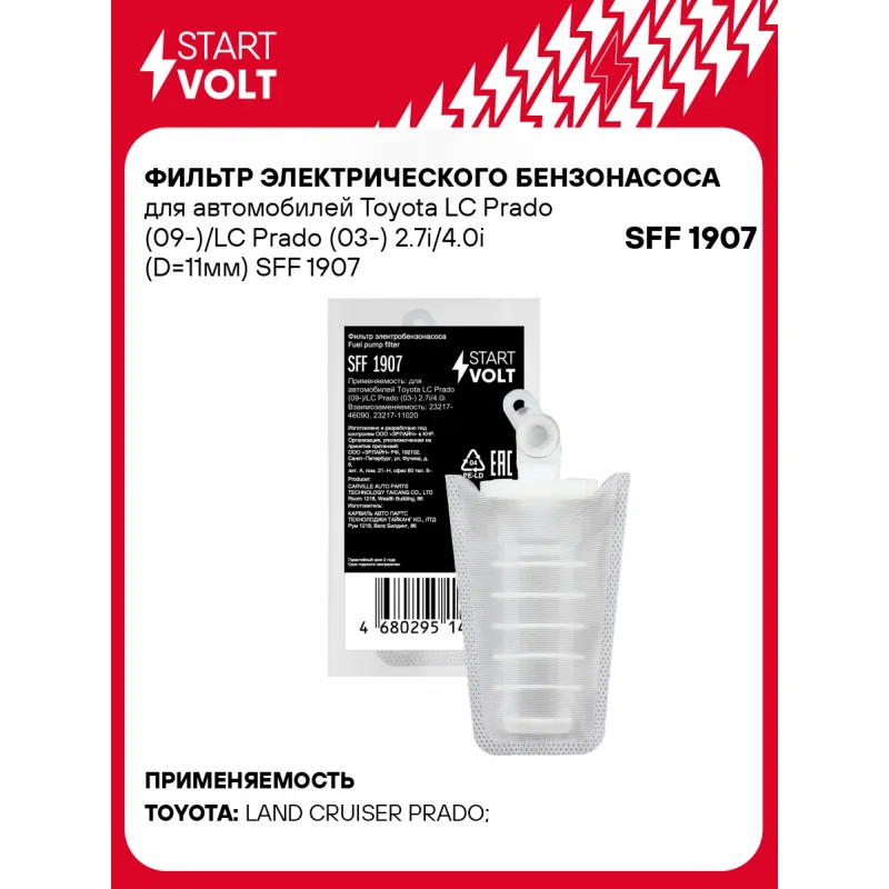 Фильтр электрического бензонасоса для автомобилей Toyota LC Prado (09-)/LC Prado (03-) 2.7i/4.0i (D=11мм) Описание: Фильтр (сетка) электрического бензонасоса для автомобилей TOYOTA LAND CRUISER.. Сетчатый фильтр – применяется в модулях погружных электробензонасосов автомобильных двигателей с системой впрыска топлива. Предназначен для предварительной очистки топлива от сорных частиц и прочих загрязнений. Эффективная защита топливного насоса и форсунки от засорения. Фильтр грубой очистки состоит из пластикового каркаса с соединительным патрубком и сетчатого материала, натянутого на каркас. Если у вас есть вопросы по применяемости, мы всегда готовы помочь вам с подбором по VIN-НОМЕРУ ВАШЕГО АВТОМОБИЛЯ. Характеристики: Артикул: SFF 1907 OEM номера: 23217-46090, 23217-11020, 23217-74030, 23217-76040, 23217-03030, 23217-0F010, HS110014 Количество на автомобиль: 1 Тип: Сетчатый фильтр Длина, мм: 120 Ширина, мм: 63 Диаметр, мм: 11 Комплектация: Фильтр-сетка - 1 шт Соединительное кольцо - 1 шт Гарантия: от 1 года.