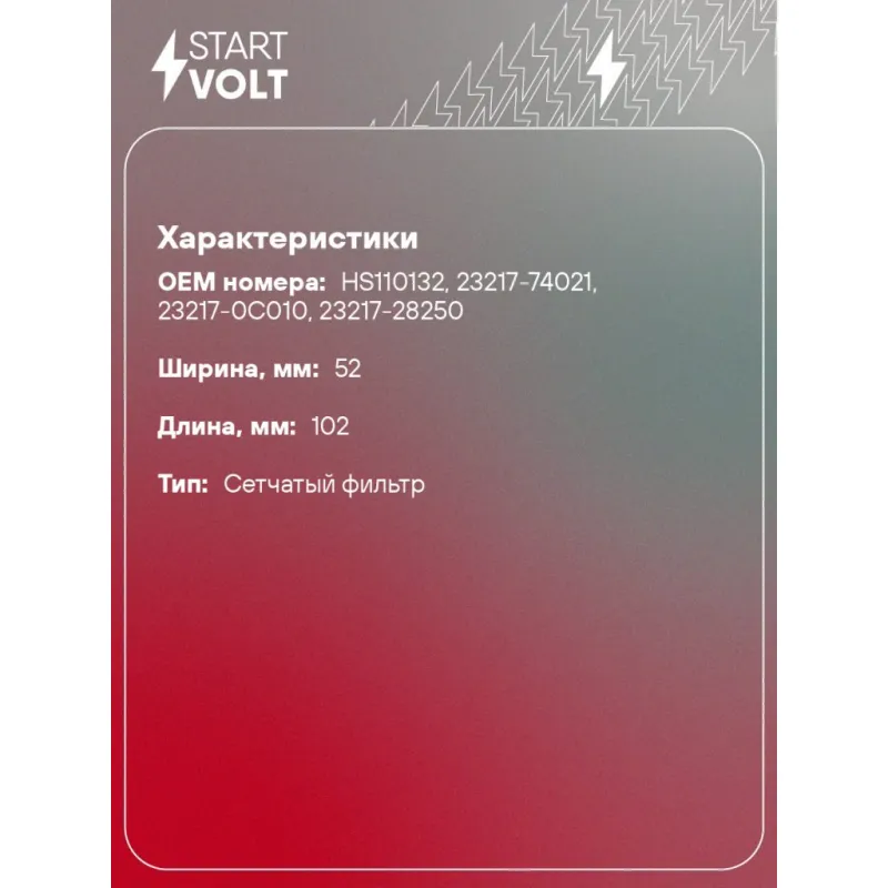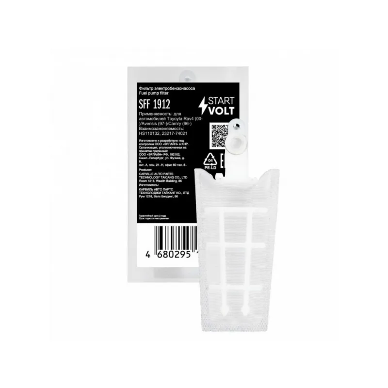 Фильтр электрического бензонасоса для автомобилей Toyota RAV4 (00-)/Avensis (97-)/Camry (96-) (D=11мм) Описание: Фильтр (сетка) электрического бензонасоса для автомобилей TOYOTA AVENSIS, RAV 4, CAMRY.. Сетчатый фильтр – применяется в модулях погружных электробензонасосов автомобильных двигателей с системой впрыска топлива. Предназначен для предварительной очистки топлива от сорных частиц и прочих загрязнений. Эффективная защита топливного насоса и форсунки от засорения. Фильтр грубой очистки состоит из пластикового каркаса с соединительным патрубком и сетчатого материала, натянутого на каркас. Если у вас есть вопросы по применяемости, мы всегда готовы помочь вам с подбором по VIN-НОМЕРУ ВАШЕГО АВТОМОБИЛЯ. Характеристики: Артикул: SFF 1912 OEM номера: HS110132, 23217-74021, 23217-0C010, 23217-28250 Количество на автомобиль: 1 Тип: Сетчатый фильтр Длина, мм: 102 Ширина, мм: 52 Диаметр, мм: 11 Комплектация: Соединительное кольцо - 1 шт Фильтр-сетка - 1 шт Гарантия: от 1 года.