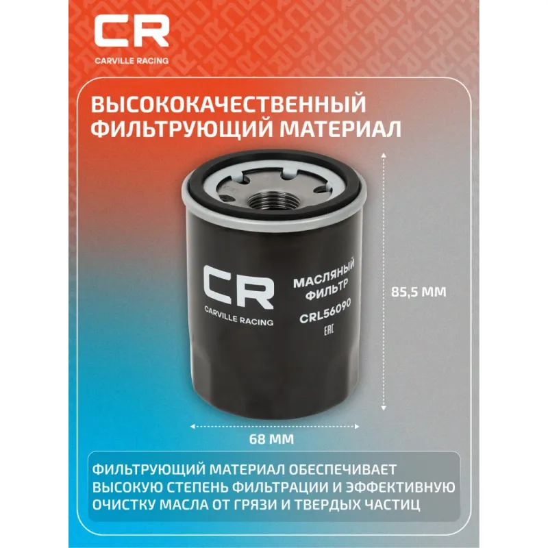 Фильтр масляный для автомобилей BAIC U5 Plus (21-)/X35 (19-) 1.5i Описание: Масляный фильтр CRL56090 бренда CARVILLE RACING обеспечивает эффективное отделение загрязнений и надежно удерживает продукты сгорания и износа, пыль, сажу и конденсат, загрязняющее моторное масло при эксплуатации двигателя. Производство фильтров осуществляется на высокотехнологичных автоматизированных линиях, сертифицированных стандартом IATF 16949:2016. Подбор по VIN-номеру вашего автомобиля - через кнопку 'Задать вопрос'. Специалист проверит применяемость и ответит вам. Применяемость BAIC X35, BEIJING U5 PLUS.. Материалы высокого качества, используемые в масляных фильтрах CARVILLE RACING гарантируют надежность на протяжении всего межсервисного интервала. Вся продукция подвергается испытаниям в специализированных лабораториях, аккредитованных стандартами с ISO 17025: 2017 и CNAS-CL01. Основные показатели эффективности фильтров превосходят промышленные стандарты качества. Автомобильный масляный фильтр создан для надежной работы вашего автомобиля, обеспечивая качественную защиту двигателя. Фильтр обеспечивает тонкую очистку масла, защищая двигатель от износа и продлевая срок его службы. Характеристики: Артикул: CRL56090 OEM номера: K00545022, K01945129 Размер резьбы: M20x1.5-6H Высота, мм: 85,5 Наружный диаметр, мм: 68 Наружный диаметр 1, мм: 62 Давление перепускного клапана, бар: 1 Исполнение фильтра: Накручиваемый фильтр Количество на автомобиль: 1 Подходит для авто: BAIC U5 Plus (21-), X35 (21-) Для проверки применяемости отправьте VIN автомобиля через вкладку "Есть вопросы о товаре?" Комплектация: Фильтр масляный - 1 шт Гарантия: от 1 года.