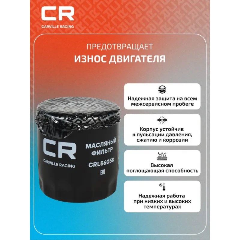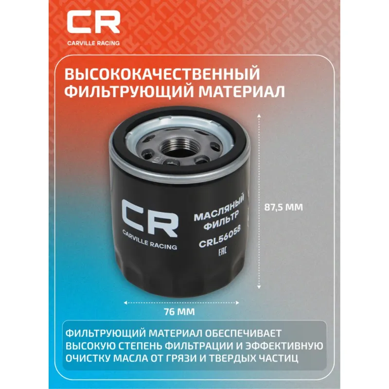Фильтр масляный для автомобилей Changan CS75 (18-) 1.8T/CS85 (22-)/CS95 (23-) 2.0T Описание: Масляный фильтр CRL56058 бренда CARVILLE RACING обеспечивает эффективное отделение загрязнений и надежно удерживает продукты сгорания и износа, пыль, сажу и конденсат, загрязняющее моторное масло при эксплуатации двигателя. Производство фильтров осуществляется на высокотехнологичных автоматизированных линиях, сертифицированных стандартом IATF 16949:2016. Подбор по VIN-номеру вашего автомобиля - через кнопку 'Задать вопрос'. Специалист проверит применяемость и ответит вам. Применяемость CHANGAN CS75, CS85, RAETON.. Материалы высокого качества, используемые в масляных фильтрах CARVILLE RACING гарантируют надежность на протяжении всего межсервисного интервала. Вся продукция подвергается испытаниям в специализированных лабораториях, аккредитованных стандартами с ISO 17025: 2017 и CNAS-CL01. Основные показатели эффективности фильтров превосходят промышленные стандарты качества. Автомобильный масляный фильтр создан для надежной работы вашего автомобиля, обеспечивая качественную защиту двигателя. Фильтр обеспечивает тонкую очистку масла, защищая двигатель от износа и продлевая срок его службы. Характеристики: Артикул: CRL56058 OEM номера: 1012010A02AB, K003-2300 Внутренний диаметр, мм: 60.4 Размер резьбы: M22x1.5-6H Высота, мм: 87.5 Наружный диаметр, мм: 76 Наружный диаметр 1, мм: 70 Давление перепускного клапана, бар: 1,5 Исполнение фильтра: Накручиваемый фильтр Количество на автомобиль: 1 Подходит для авто: Changan CS75 (18-) Для проверки применяемости отправьте VIN автомобиля через вкладку "Есть вопросы о товаре?" Комплектация: Фильтр масляный - 1 шт Гарантия: от 1 года.