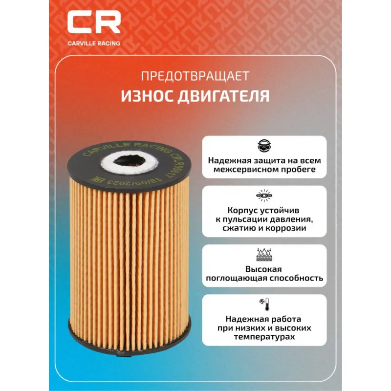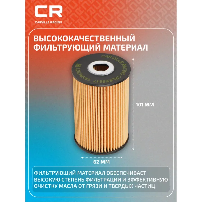 Фильтр масляный для автомобилей SsangYong Actyon (10-)/Korando (10-) 2.0i Описание: Фильтр масляный для автомобилей SsangYong Actyon, Korando / СсангИонг Актион, Корандо CARVILLE RACING CRLR55617 Масляный фильтр обеспечивает эффективное отделение загрязнений и надежно удерживает продукты сгорания и износа, пыль, сажу и конденсат, загрязняющее моторное масло при эксплуатации двигателя. Материалы высокого качества, используемые в масляных фильтрах CARVILLE RACING гарантируют надежность на протяжении всего межсервисного интервала. Производство фильтров осуществляется на высокотехнологичных автоматизированных линиях, сертифицированных стандартом IATF 16949:2016. Применяемость SSANGYONG ACTYON, KORANDO. Чтобы убедиться, что деталь подойдет на Ваш автомобиль, пожалуйста, отправьте через кнопку 'Задать вопрос' нам сообщение с VIN-номером вашего автомобиля. Вся продукция подвергается испытаниям в специализированных лабораториях, аккредитованных стандартами с ISO 17025: 2017 и CNAS-CL01. Основные показатели эффективности фильтров превосходят промышленные стандарты качества. В нашем магазине, вы найдете широкий ассортимент высококачественных автотоваров, автозапчастей, ремонтные комплекты авто аксессуары, электрооборудование, автогаджеты и девайсы, фильтры и многое другое. Мы гарантируем качество и надежность наших товаров. Характеристики: Артикул: CRLR55617 OEM номера: 1721803009, A1721840025 Внутренний диаметр, мм: 18 Высота, мм: 101 Наружный диаметр, мм: 62 Внутренний диаметр 1, мм: 25 Исполнение фильтра: Фильтр-патрон Количество на автомобиль: 1 Комплектация: Прокладка - 1 шт Кольцо уплотнительное - 1 шт Фильтр масляный - 1 шт Гарантия: от 1 года.