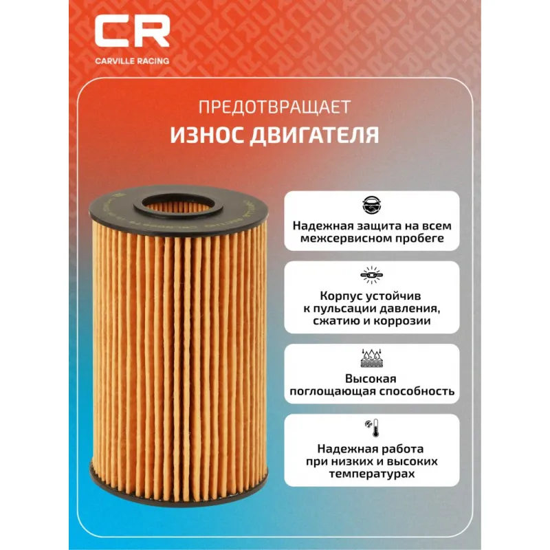 Фильтр масляный для автомобилей Toyota Land Cruiser 200 (07-) 4.5D/4.6i/Lexus LX (07-) 5.7i Описание: Масляный фильтр CRLR55679 бренда CARVILLE RACING обеспечивает эффективное отделение загрязнений и надежно удерживает продукты сгорания и износа, пыль, сажу и конденсат, загрязняющее моторное масло при эксплуатации двигателя. Производство фильтров осуществляется на высокотехнологичных автоматизированных линиях, сертифицированных стандартом IATF 16949:2016. Подбор по VIN-номеру вашего автомобиля - через кнопку 'Задать вопрос'. Специалист проверит применяемость и ответит вам. Применяемость LEXUS RC, LX, GS, LC, TOYOTA TUNDRA, LAND CRUISER, SEQUOIA.. Материалы высокого качества, используемые в масляных фильтрах CARVILLE RACING гарантируют надежность на протяжении всего межсервисного интервала. Вся продукция подвергается испытаниям в специализированных лабораториях, аккредитованных стандартами с ISO 17025: 2017 и CNAS-CL01. Основные показатели эффективности фильтров превосходят промышленные стандарты качества. Автомобильный масляный фильтр создан для надежной работы вашего автомобиля, обеспечивая качественную защиту двигателя. Фильтр обеспечивает тонкую очистку масла, защищая двигатель от износа и продлевая срок его службы. Характеристики: Артикул: CRLR55679 OEM номера: 04152-YZZA4, 04152-38020 Внутренний диаметр, мм: 28 Высота, мм: 117.5 Наружный диаметр, мм: 70 Исполнение фильтра: Фильтр-патрон Количество на автомобиль: 1 Комплектация: Фильтр масляный - 1 шт Уплотнительное кольцо - 2 шт Приспособление для удаления фильтра - 1 шт Гарантия: от 1 года.