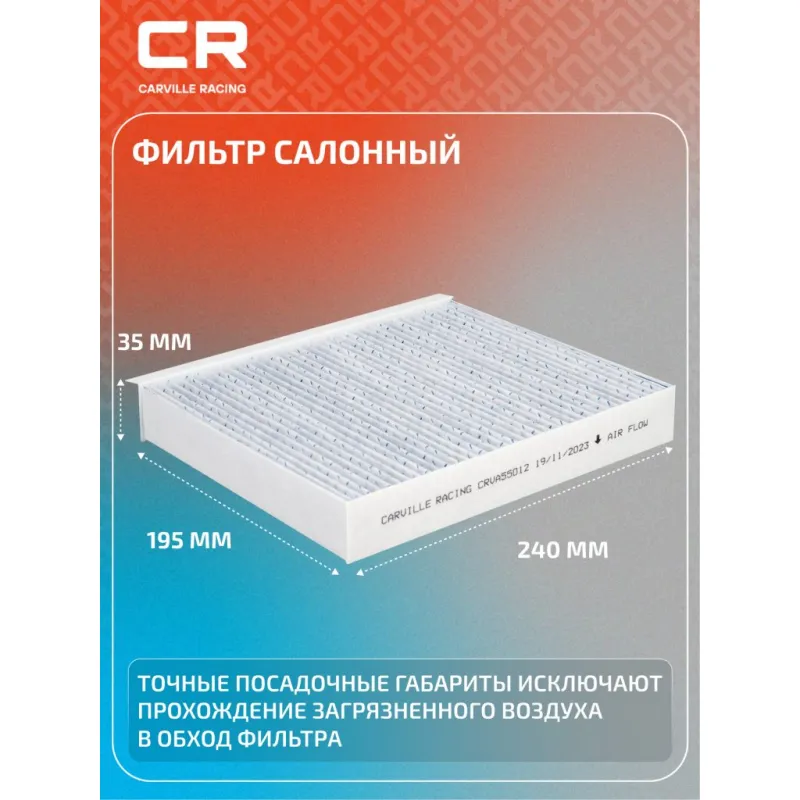 Фильтр салонный антибактериальный для автомобилей Changan CS55 (21-)/CS75 (21-)/CS85 (19-)/Uni-T (20-)/Uni-V (22-)/GAC GS3 (24-) Описание: Салонные фильтры CRVA55012 бренда CARVILLE RACING обеспечивают подачу очищенного воздуха в салон автомобиля, эффективно защищают водителя и пассажиров от воздействия пыли, сажи, смога, пыльцы и других дорожных загрязнений. Антибактериальные фильтры с дополнительной защитой от бактерий, аллергенов и вирусов. Подбор по VIN-номеру вашего автомобиля - через кнопку 'Задать вопрос'. Специалист проверит применяемость и ответит вам. Применяемость CHANGAN CS55, CS85, UNI-V, LAMORE, CS75, UNI-T, UNI-S, EADO, GAC GS3, EMPOW.. Производство фильтров осуществляется на высокотехнологичных автоматизированных линиях, сертифицированных стандартом IATF 16949:2016. Вся продукция испытывается в испытательных лабораториях, аккредитованных стандартами по ISO 17025: 2017 и CNAS-CL01. Большое количество складок и большая площадь фильтрации обеспечивают фильтрацию мельчайших загрязнений и большую грязеемкость для длительного срока службы. Устойчивы к воздействию влаги и перепаду температур, предотвращают запотевание окон. Точные посадочные габариты исключают прохождение воздуха в обход фильтра. Характеристики: Артикул: CRVA55012 OEM номера: C281F2801032601, S201041-3700, S201041-3701, 8119030-AW01, 8119030-AW02, C281F2801032600, 8119030PT03, S302F280103-2601, 8119030-M51, 8119030CN03, C2010413700, 8119030CW01, 8119030DE01, 8880027CRV0000, 8880027BSV0000, 8105005AVNS030 Ширина, мм: 195 Длина, мм: 240 Высота, мм: 35 Исполнение фильтра: Антибактериальный фильтр Количество на автомобиль: 1 Подходит для авто: Changan Eado Plus (20-), CS55 Plus (21-), Uni-V (22-), Uni-T (20-), CS75 (21-), CS85 (19-), CS55 (19-), CS75 Plus (23-) GAC GS3 (24-) Для проверки применяемости отправьте VIN автомобиля через вкладку "Есть вопросы о товаре?" Комплектация: Фильтр салонный - 1 шт Гарантия: от 1 года.
