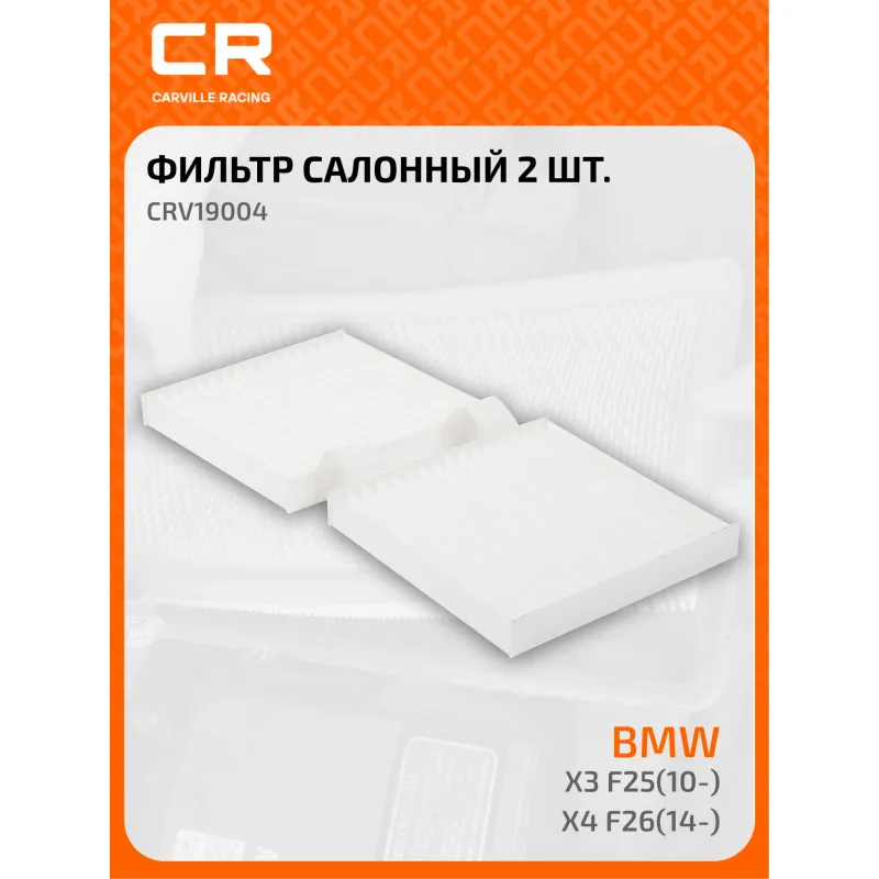 Фильтр салонный для автомобилей BMW X3 F25 (10-)/X4 F26 (14-) без автоматического климат-котроля Описание: Фильтр салонный для автомобилей Alpina XD3, BMW (X3 X4) / Альпина, БМВ, частичный пылевой фильтр CARVILLE RACING CRV19004 Салонные фильтры обеспечивают подачу очищенного воздуха в салон автомобиля, эффективно защищают водителя и пассажиров от воздействия пыли, сажи, смога, пыльцы и других дорожных загрязнений. Большое количество складок и большая площадь фильтрации обеспечивают фильтрацию мельчайших загрязнений и большую грязеемкость для длительного срока службы. Устойчивы к воздействию влаги и перепаду температур, предотвращают запотевание окон. Применяемость ALPINA XD3, BMW X4, X3. Чтобы убедиться, что деталь подойдет на Ваш автомобиль, пожалуйста, отправьте через кнопку 'Задать вопрос' нам сообщение с VIN-номером вашего автомобиля. Точные посадочные габариты исключают прохождение воздуха в обход фильтра. Вся продукция подвергается испытаниям в специализированных лабораториях, аккредитованных стандартами с ISO 17025: 2017 и CNAS-CL01. В нашем магазине, вы найдете широкий ассортимент высококачественных автотоваров, автозапчастей, ремонтные комплекты авто аксессуары, электрооборудование, автогаджеты и девайсы, фильтры и многое другое. Мы гарантируем качество и надежность наших товаров. Характеристики: Артикул: CRV19004 OEM номера: 64 31 9 312 316, 64 31 2 284 827, 64 31 9 237 158 Ширина, мм: 187 Длина, мм: 188 Высота, мм: 25 Количество в комплекте, шт: 2 Исполнение фильтра: Частичный фильтр Комплект: Да Количество на автомобиль: 1 Комплектация: Фильтр салонный - 2 шт Гарантия: от 1 года.