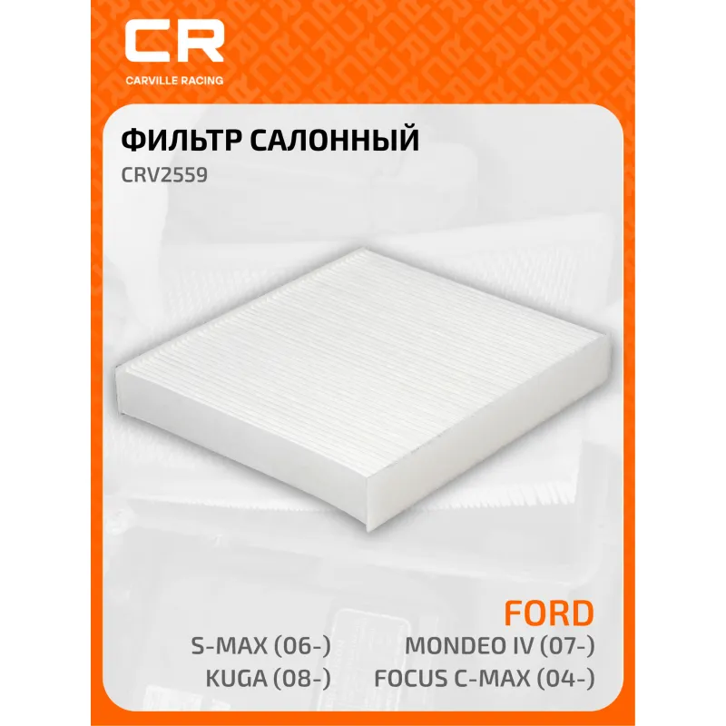 Фильтр салонный для автомобилей Ford Mondeo IV (07-)/Focus C-Max (04-)/S-Max (06-)/Kuga (08-) Описание: Салонные фильтры CRV2559 бренда CARVILLE RACING обеспечивают подачу очищенного воздуха в салон автомобиля, эффективно защищают водителя и пассажиров от воздействия пыли, сажи, смога, пыльцы и других дорожных загрязнений. Большое количество складок и большая площадь фильтрации обеспечивают фильтрацию мельчайших загрязнений и большую грязеемкость для длительного срока службы. Подбор по VIN-номеру вашего автомобиля - через кнопку 'Задать вопрос'. Специалист проверит применяемость и ответит вам. Применяемость FORD S-MAX, MONDEO, KUGA, GALAXY, C-MAX.. Устойчивы к воздействию влаги и перепаду температур, предотвращают запотевание окон. Точные посадочные габариты исключают прохождение воздуха в обход фильтра. Вся продукция подвергается испытаниям в специализированных лабораториях, аккредитованных стандартами с ISO 17025: 2017 и CNAS-CL01. Изготавливается по современным технологиям. Применение фильтра улучшает воздухопоток в салоне. Фильтр обеспечивает чистоту воздуха в салоне автомобиля. Характеристики: Артикул: CRV2559 OEM номера: 1315 687, 1713 180, 1315 686, 1585 224, 3M5J-18D543-BA Ширина, мм: 209 Длина, мм: 240 Высота, мм: 35 Исполнение фильтра: Частичный фильтр Количество на автомобиль: 1 Комплектация: Фильтр салонный - 1 шт Гарантия: от 1 года.