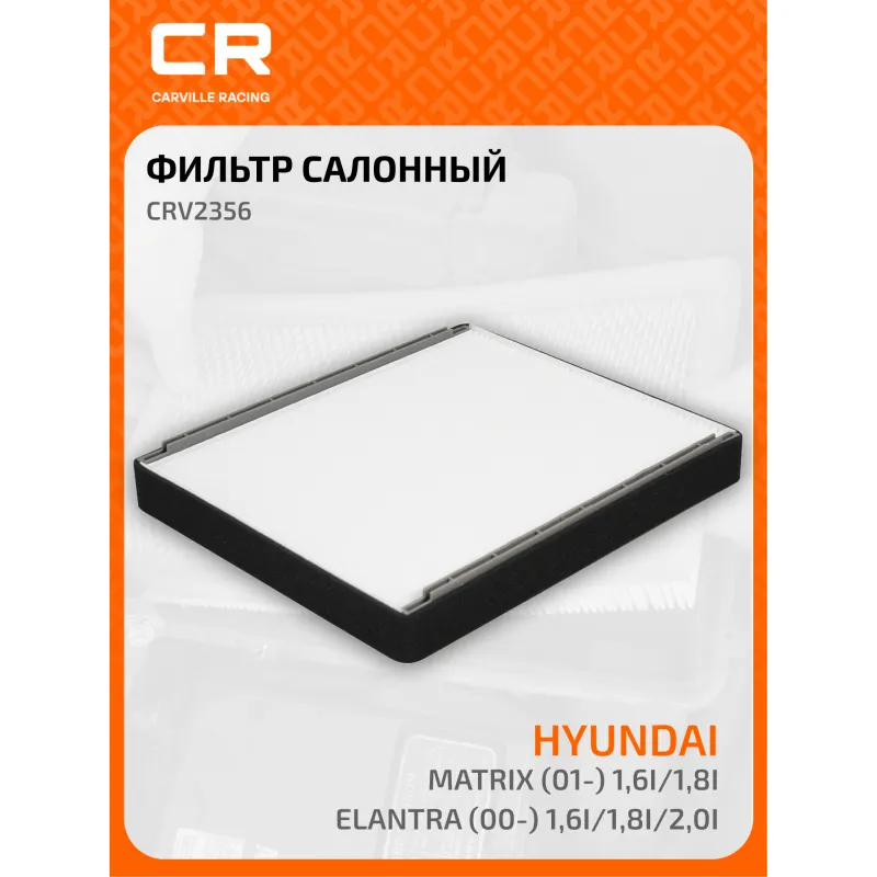 Фильтр салонный для автомобилей Hyundai Matrix (01-) 1.6i/1.8i/Elantra (00-) 1.6i/1.8i/2.0i Описание: Салонные фильтры обеспечивают подачу очищенного воздуха в салон автомобиля, эффективно защищают водителя и пассажиров от воздействия пыли, сажи, смога, пыльцы и других дорожных загрязнений. Большое количество складок и большая площадь фильтрации обеспечивают фильтрацию мельчайших загрязнений и большую грязеемкость для длительного срока службы. Устойчивы к воздействию влаги и перепаду температур, предотвращают запотевание окон. Применяемость HYUNDAI ELANTRA, MATRIX, COUPE, TIBURON. Чтобы убедиться, что деталь подойдет на Ваш автомобиль, пожалуйста, отправьте через кнопку 'Задать вопрос' нам сообщение с VIN-номером вашего автомобиля. Точные посадочные габариты исключают прохождение воздуха в обход фильтра. Угольные фильтры обеспечивают лучшую фильтрацию выхлопных газов и неприятных запахов. Антибактериальные фильтры с дополнительной защитой от бактерий, аллергенов и вирусов. Вся продукция подвергается испытаниям в специализированных лабораториях, аккредитованных стандартами с ISO 17025: 2017 и CNAS-CL01. В нашем магазине, вы найдете широкий ассортимент высококачественных автотоваров, автозапчастей, ремонтные комплекты авто аксессуары, электрооборудование, автогаджеты и девайсы, фильтры и многое другое. Мы гарантируем качество и надежность наших товаров. Характеристики: Артикул: CRV2356 OEM номера: 97133-2D000, 97133-2D000AT, 97133-2D100, 97133-2D100AT, 97133-2D900, 9999Z-07015 Ширина, мм: 237,5 Длина, мм: 268 Высота, мм: 34 Исполнение фильтра: Частичный фильтр Количество на автомобиль: 1 Комплектация: Фильтр салонный - 1 шт Гарантия: от 1 года.