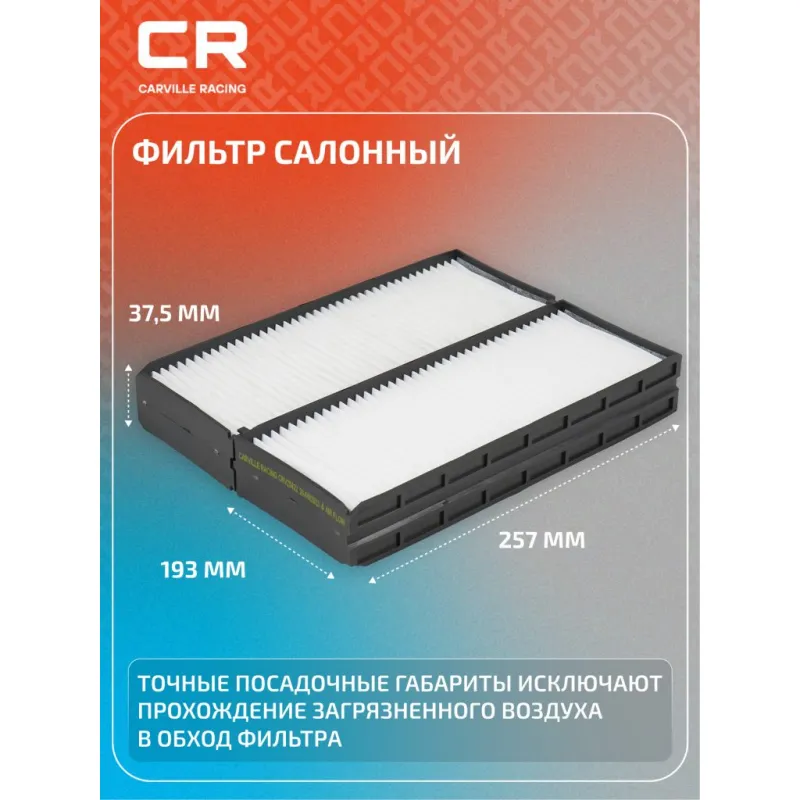 Фильтр салонный для автомобилей Hyundai Santa Fe (01-)/Sonata IV (01-) Описание: Салонные фильтры обеспечивают подачу очищенного воздуха в салон автомобиля, эффективно защищают водителя и пассажиров от воздействия пыли, сажи, смога, пыльцы и других дорожных загрязнений. Большое количество складок и большая площадь фильтрации обеспечивают фильтрацию мельчайших загрязнений и большую грязеемкость для длительного срока службы. Устойчивы к воздействию влаги и перепаду температур, предотвращают запотевание окон. Применяемость HYUNDAI SANTA FE, SONATA, GRANDEUR. Чтобы убедиться, что деталь подойдет на Ваш автомобиль, пожалуйста, отправьте через кнопку 'Задать вопрос' нам сообщение с VIN-номером вашего автомобиля. Точные посадочные габариты исключают прохождение воздуха в обход фильтра. Угольные фильтры обеспечивают лучшую фильтрацию выхлопных газов и неприятных запахов. Антибактериальные фильтры с дополнительной защитой от бактерий, аллергенов и вирусов. Вся продукция подвергается испытаниям в специализированных лабораториях, аккредитованных стандартами с ISO 17025: 2017 и CNAS-CL01. В нашем магазине, вы найдете широкий ассортимент высококачественных автотоваров, автозапчастей, ремонтные комплекты авто аксессуары, электрооборудование, автогаджеты и девайсы, фильтры и многое другое. Мы гарантируем качество и надежность наших товаров. Характеристики: Артикул: CRV25422 OEM номера: 97619-3D000, 97619-3D100, 97619-3D200, 97619-3D200AT Ширина, мм: 193 Длина, мм: 257 Высота, мм: 37,5 Количество в комплекте, шт: 2 Исполнение фильтра: Частичный фильтр Комплект: Да Количество на автомобиль: 1 Комплектация: Фильтр салонный - 2 шт Гарантия: от 1 года.