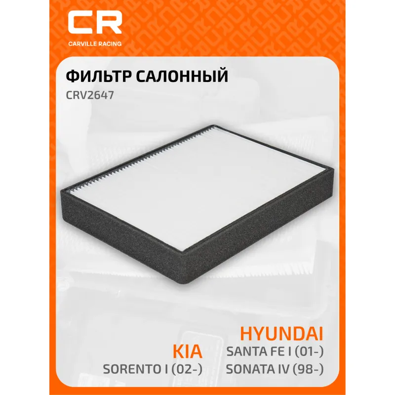 Фильтр салонный для автомобилей Hyundai Santa Fe I (01-)/Sonata IV (98-)/Kia Sorento I (02-) Описание: Салонные фильтры обеспечивают подачу очищенного воздуха в салон автомобиля, эффективно защищают водителя и пассажиров от воздействия пыли, сажи, смога, пыльцы и других дорожных загрязнений. Большое количество складок и большая площадь фильтрации обеспечивают фильтрацию мельчайших загрязнений и большую грязеемкость для длительного срока службы. Устойчивы к воздействию влаги и перепаду температур, предотвращают запотевание окон. Применяемость HYUNDAI SONATA, GRANDEUR, TRAJET, SANTA FE, KIA MAGENTIS, SORENTO. Чтобы убедиться, что деталь подойдет на Ваш автомобиль, пожалуйста, отправьте через кнопку 'Задать вопрос' нам сообщение с VIN-номером вашего автомобиля. Точные посадочные габариты исключают прохождение воздуха в обход фильтра. Угольные фильтры обеспечивают лучшую фильтрацию выхлопных газов и неприятных запахов. Антибактериальные фильтры с дополнительной защитой от бактерий, аллергенов и вирусов. Вся продукция подвергается испытаниям в специализированных лабораториях, аккредитованных стандартами с ISO 17025: 2017 и CNAS-CL01. В нашем магазине, вы найдете широкий ассортимент высококачественных автотоваров, автозапчастей, ремонтные комплекты авто аксессуары, электрооборудование, автогаджеты и девайсы, фильтры и многое другое. Мы гарантируем качество и надежность наших товаров. Характеристики: Артикул: CRV2647 OEM номера: 97619-38000, 97619-38100AT, 9999Z-07010, S97619-38100AT, 97619-38100, 97619-3C100, 97619-3C102, 97619-3E000 Ширина, мм: 194 Длина, мм: 262,5 Высота, мм: 37,5 Исполнение фильтра: Частичный фильтр Количество на автомобиль: 1 Комплектация: Фильтр салонный - 1 шт Гарантия: от 1 года.