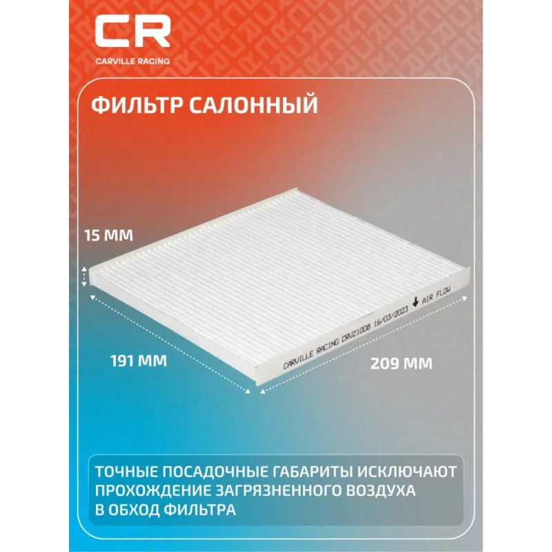 Фильтр салонный для автомобилей Hyundai Solaris (01.12-)/ Kia Rio III (11-) Описание: Салонные фильтры обеспечивают подачу очищенного воздуха в салон автомобиля, эффективно защищают водителя и пассажиров от воздействия пыли, сажи, смога, пыльцы и других дорожных загрязнений. Большое количество складок и большая площадь фильтрации обеспечивают фильтрацию мельчайших загрязнений и большую грязеемкость для длительного срока службы. Устойчивы к воздействию влаги и перепаду температур, предотвращают запотевание окон. Применяемость HYUNDAI SOLARIS, KIA RIO. Чтобы убедиться, что деталь подойдет на Ваш автомобиль, пожалуйста, отправьте через кнопку 'Задать вопрос' нам сообщение с VIN-номером вашего автомобиля. Точные посадочные габариты исключают прохождение воздуха в обход фильтра. Угольные фильтры обеспечивают лучшую фильтрацию выхлопных газов и неприятных запахов. Антибактериальные фильтры с дополнительной защитой от бактерий, аллергенов и вирусов. Вся продукция подвергается испытаниям в специализированных лабораториях, аккредитованных стандартами с ISO 17025: 2017 и CNAS-CL01. В нашем магазине, вы найдете широкий ассортимент высококачественных автотоваров, автозапчастей, ремонтные комплекты авто аксессуары, электрооборудование, автогаджеты и девайсы, фильтры и многое другое. Мы гарантируем качество и надежность наших товаров. Характеристики: Артикул: CRV21008 OEM номера: 97133-4L000, S9713 34L000 Исполнение фильтра: Частичный фильтр Количество на автомобиль: 1 Длина, мм: 209 Ширина, мм: 191 Высота, мм: 15 Комплектация: Фильтр салонный - 1 шт Гарантия: от 1 года.