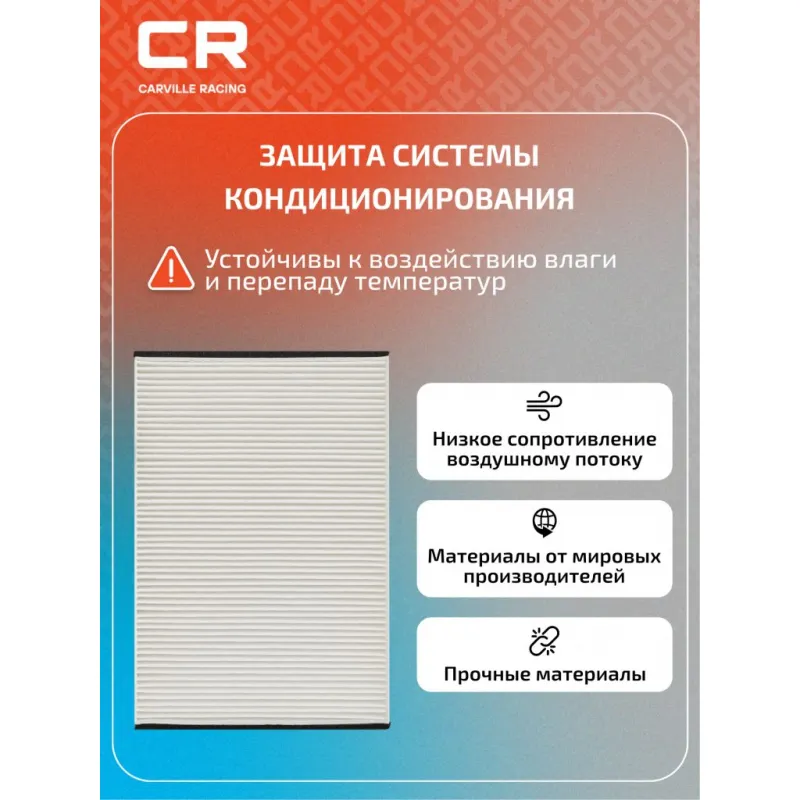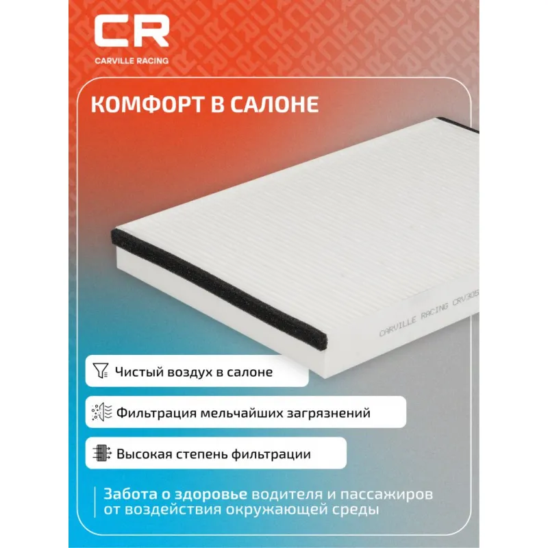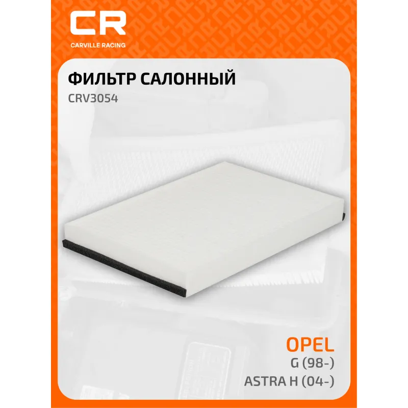 Фильтр салонный для автомобилей Opel Astra H (04-)/G (98-) Описание: Салонные фильтры CRV3054 бренда CARVILLE RACING обеспечивают подачу очищенного воздуха в салон автомобиля, эффективно защищают водителя и пассажиров от воздействия пыли, сажи, смога, пыльцы и других дорожных загрязнений. Большое количество складок и большая площадь фильтрации обеспечивают фильтрацию мельчайших загрязнений и большую грязеемкость для длительного срока службы. Подбор по VIN-номеру вашего автомобиля - через кнопку 'Задать вопрос'. Специалист проверит применяемость и ответит вам. Применяемость CHEVROLET ASTRA, HOLDEN ASTRA, ZAFIRA, OPEL ZAFIRA, ASTRA, VAUXHALL ZAFIRA, ASTRA.. Устойчивы к воздействию влаги и перепаду температур, предотвращают запотевание окон. Точные посадочные габариты исключают прохождение воздуха в обход фильтра. Вся продукция подвергается испытаниям в специализированных лабораториях, аккредитованных стандартами с ISO 17025: 2017 и CNAS-CL01. Изготавливается по современным технологиям. Применение фильтра улучшает воздухопоток в салоне. Фильтр обеспечивает чистоту воздуха в салоне автомобиля. Характеристики: Артикул: CRV3054 OEM номера: 6808606, 90520689, 1 808 610, 13175553 Ширина, мм: 200 Длина, мм: 300 Высота, мм: 30 Исполнение фильтра: Пылевой Количество на автомобиль: 1 Комплектация: Фильтр салонный - 1 шт Гарантия: от 1 года.