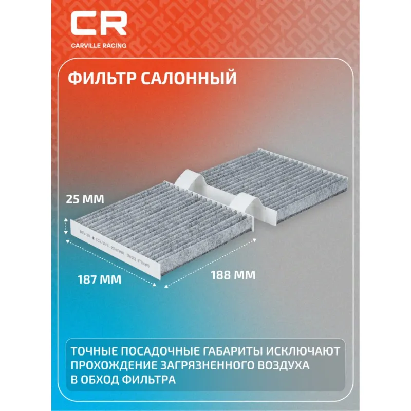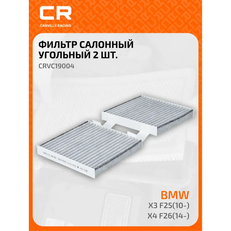 Фильтр салонный угольный для автомобилей BMW X3 F25 (10-)/X4 F26 (14-) без автоматического климат-котроля Описание: Фильтр салонный для автомобилей Alpina XD3, BMW (X3 X4) / Альпина, БМВ, угольный фильтр CARVILLE RACING CRVC19004 Салонные фильтры обеспечивают подачу очищенного воздуха в салон автомобиля, эффективно защищают водителя и пассажиров от воздействия пыли, сажи, смога, пыльцы и других дорожных загрязнений. Большое количество складок и большая площадь фильтрации обеспечивают фильтрацию мельчайших загрязнений и большую грязеемкость для длительного срока службы. Устойчивы к воздействию влаги и перепаду температур, предотвращают запотевание окон. Точные посадочные габариты исключают прохождение воздуха в обход фильтра. - Угольные фильтры обеспечивают лучшую фильтрацию выхлопных газов и неприятных запахов. Применяемость ALPINA XD3, BMW X4, X3. Чтобы убедиться, что деталь подойдет на Ваш автомобиль, пожалуйста, отправьте через кнопку 'Задать вопрос' нам сообщение с VIN-номером вашего автомобиля. Производство фильтров осуществляется на высокотехнологичных автоматизированных линиях, сертифицированных стандартом IATF 16949:2016. Вся продукция испытывается в испытательных лабораториях, аккредитованных стандартами по ISO 17025: 2017 и CNAS-CL01. В нашем магазине, вы найдете широкий ассортимент высококачественных автотоваров, автозапчастей, ремонтные комплекты авто аксессуары, электрооборудование, автогаджеты и девайсы, фильтры и многое другое. Мы гарантируем качество и надежность наших товаров. Характеристики: Артикул: CRVC19004 OEM номера: 64 31 9 312 318, 64 31 2 284 828, 64 31 9 237 157, 64 31 9 312 317, 64 31 9 395 930, 93 12 3 18 Ширина, мм: 187 Длина, мм: 188 Высота, мм: 25 Количество в комплекте, шт: 2 Исполнение фильтра: Фильтр активированного угля Комплект: Да Количество на автомобиль: 1 Комплектация: Фильтр салонный - 2 шт Гарантия: от 1 года.