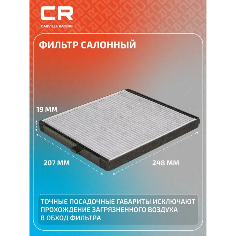 Фильтр салонный угольный для автомобилей Chevrolet Aveo (02-)/Kalos (02-) Описание: Фильтр салонный для автомобилей Chevrolet Aveo, Daewoo Kalos / Шевроле Авео, Дэу Калос, угольный фильтр CARVILLE RACING CRVC2330 Салонные фильтры обеспечивают подачу очищенного воздуха в салон автомобиля, эффективно защищают водителя и пассажиров от воздействия пыли, сажи, смога, пыльцы и других дорожных загрязнений. Большое количество складок и большая площадь фильтрации обеспечивают фильтрацию мельчайших загрязнений и большую грязеемкость для длительного срока службы. Устойчивы к воздействию влаги и перепаду температур, предотвращают запотевание окон. Точные посадочные габариты исключают прохождение воздуха в обход фильтра. - Угольные фильтры обеспечивают лучшую фильтрацию выхлопных газов и неприятных запахов. Применяемость CHEVROLET AVEO, SAIL, DAEWOO AVEO / KALOS, HOLDEN BARINA, TAGAZ AQUILA. Чтобы убедиться, что деталь подойдет на Ваш автомобиль, пожалуйста, отправьте через кнопку 'Задать вопрос' нам сообщение с VIN-номером вашего автомобиля. Производство фильтров осуществляется на высокотехнологичных автоматизированных линиях, сертифицированных стандартом IATF 16949:2016. Вся продукция испытывается в испытательных лабораториях, аккредитованных стандартами по ISO 17025: 2017 и CNAS-CL01. В нашем магазине, вы найдете широкий ассортимент высококачественных автотоваров, автозапчастей, ремонтные комплекты авто аксессуары, электрооборудование, автогаджеты и девайсы, фильтры и многое другое. Мы гарантируем качество и надежность наших товаров. Характеристики: Артикул: CRVC2330 OEM номера: 96 962 173, 96 449 577, 96 539 649, EC 96 539 649, 95 528 636 Ширина, мм: 207 Длина, мм: 248 Высота, мм: 19 Исполнение фильтра: Фильтр активированного угля Количество на автомобиль: 1 Комплектация: Фильтр салонный - 1 шт Гарантия: от 1 года.