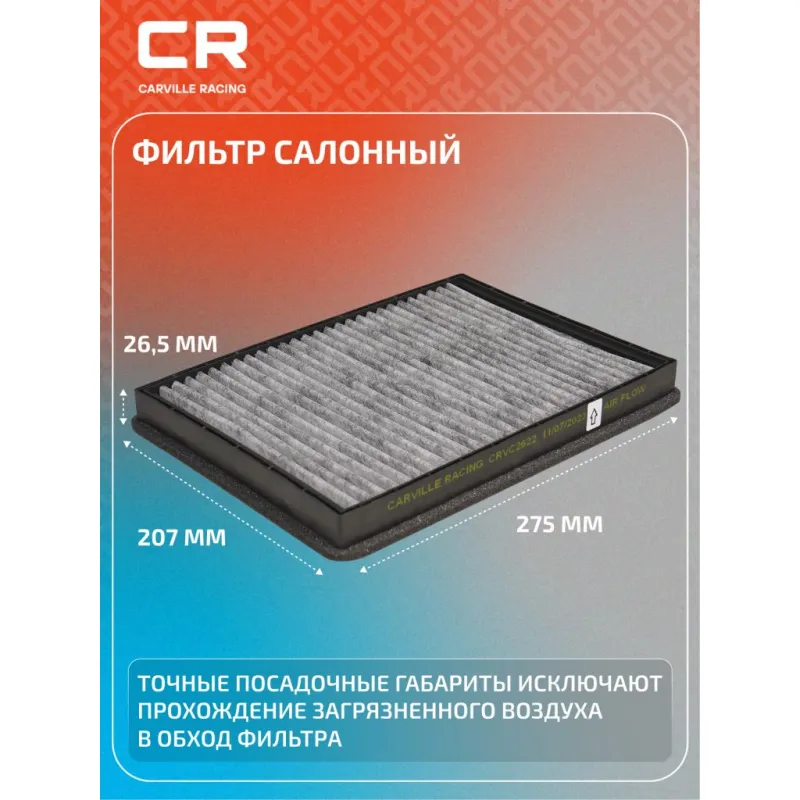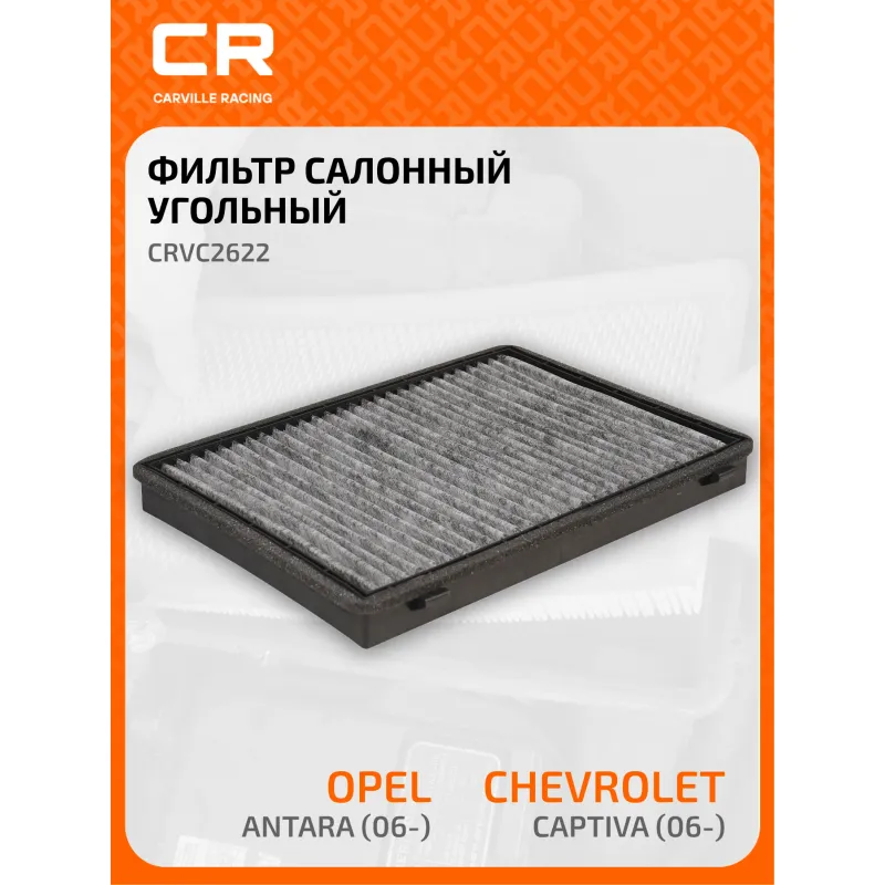 Фильтр салонный угольный для автомобилей Chevrolet Captiva (06-)/Opel Antara (06-) Описание: Фильтр салонный для автомобилей Chevrolet Captiva, Opel Antara / Шевроле Каптива, Опель Антара, угольный фильтр CARVILLE RACING CRVC2622 Салонные фильтры обеспечивают подачу очищенного воздуха в салон автомобиля, эффективно защищают водителя и пассажиров от воздействия пыли, сажи, смога, пыльцы и других дорожных загрязнений. Большое количество складок и большая площадь фильтрации обеспечивают фильтрацию мельчайших загрязнений и большую грязеемкость для длительного срока службы. Устойчивы к воздействию влаги и перепаду температур, предотвращают запотевание окон. Точные посадочные габариты исключают прохождение воздуха в обход фильтра. - Угольные фильтры обеспечивают лучшую фильтрацию выхлопных газов и неприятных запахов. Применяемость CHEVROLET CAPTIVA, DAEWOO WINSTORM, HOLDEN CAPTIVA, OPEL ANTARA, VAUXHALL ANTARA. Чтобы убедиться, что деталь подойдет на Ваш автомобиль, пожалуйста, отправьте через кнопку 'Задать вопрос' нам сообщение с VIN-номером вашего автомобиля. Производство фильтров осуществляется на высокотехнологичных автоматизированных линиях, сертифицированных стандартом IATF 16949:2016. Вся продукция испытывается в испытательных лабораториях, аккредитованных стандартами по ISO 17025: 2017 и CNAS-CL01. В нашем магазине, вы найдете широкий ассортимент высококачественных автотоваров, автозапчастей, ремонтные комплекты авто аксессуары, электрооборудование, автогаджеты и девайсы, фильтры и многое другое. Мы гарантируем качество и надежность наших товаров. Характеристики: Артикул: CRVC2622 OEM номера: 4819126, 95599725, 22753219, EC22753219 Ширина, мм: 207 Длина, мм: 275 Высота, мм: 26,5 Исполнение фильтра: Фильтр активированного угля Количество на автомобиль: 1 Комплектация: Фильтр салонный - 1 шт Гарантия: от 1 года.