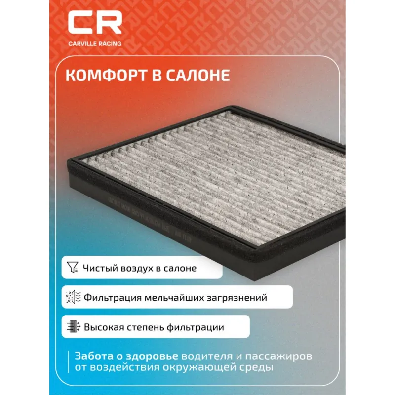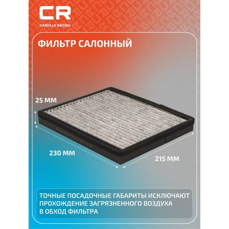 Фильтр салонный угольный для автомобилей Chevrolet Lacetti (04-) Описание: Фильтр салонный для автомобилей Chevrolet Lacetti, Daewoo Nubira / Шевроле Лачетти, Део Нубира, угольный фильтр CARVILLE RACING CRVC1719 Салонные фильтры обеспечивают подачу очищенного воздуха в салон автомобиля, эффективно защищают водителя и пассажиров от воздействия пыли, сажи, смога, пыльцы и других дорожных загрязнений. Большое количество складок и большая площадь фильтрации обеспечивают фильтрацию мельчайших загрязнений и большую грязеемкость для длительного срока службы. Устойчивы к воздействию влаги и перепаду температур, предотвращают запотевание окон. Точные посадочные габариты исключают прохождение воздуха в обход фильтра. Угольные фильтры обеспечивают лучшую фильтрацию выхлопных газов и неприятных запахов. Применяемость CHEVROLET NUBIRA, LACETTI, OPTRA, DAEWOO NUBIRA, LACETTI, GENTRA, HOLDEN VIVA, UZ-DAEWOO GENTRA Saloon. Чтобы убедиться, что деталь подойдет на Ваш автомобиль, пожалуйста, отправьте через кнопку 'Задать вопрос' нам сообщение с VIN-номером вашего автомобиля. Производство фильтров осуществляется на высокотехнологичных автоматизированных линиях, сертифицированных стандартом IATF 16949:2016. Вся продукция испытывается в испытательных лабораториях, аккредитованных стандартами по ISO 17025: 2017 и CNAS-CL01. В нашем магазине, вы найдете широкий ассортимент высококачественных автотоваров, автозапчастей, ремонтные комплекты авто аксессуары, электрооборудование, автогаджеты и девайсы, фильтры и многое другое. Мы гарантируем качество и надежность наших товаров. Характеристики: Артикул: CRVC1719 OEM номера: 96 554 378, 96 554 421, 92231069 Ширина, мм: 215 Длина, мм: 230 Высота, мм: 25 Исполнение фильтра: Угольный фильтр Количество на автомобиль: 1 Комплектация: Фильтр салонный угольный - 1 шт Гарантия: от 1 года.