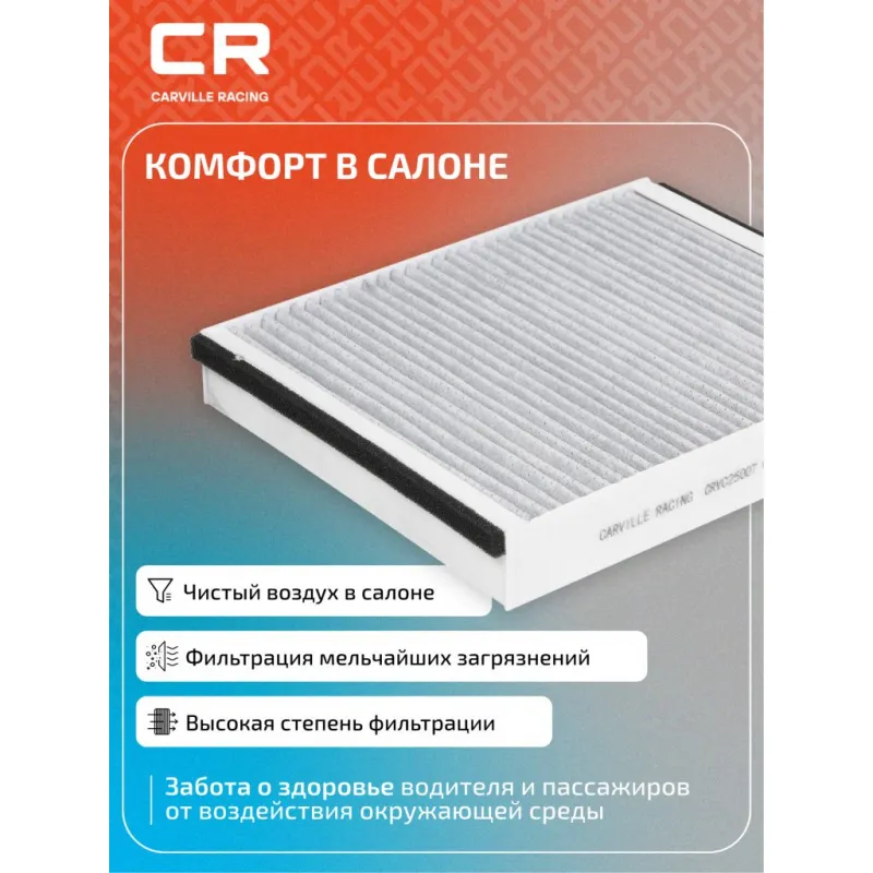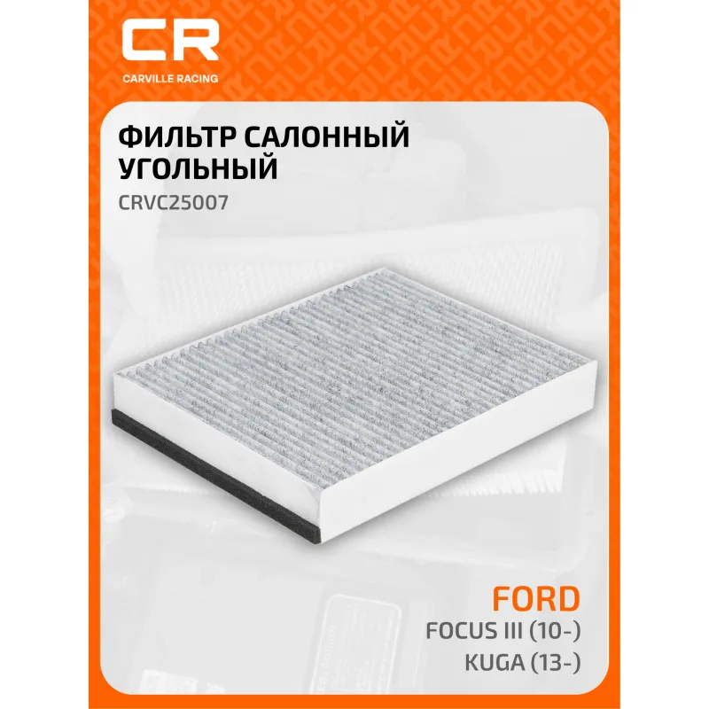Фильтр салонный угольный для автомобилей Ford Focus III (10-)/Kuga (13-) Описание: Фильтр салонный для автомобилей Ford (C-MAX, Focus, Grand, Kuga, Tourneo, Transit) Volvo V40 / Форд (C-MAX, Фокус, Гранд, Куга, Турнео, Транзит), Вольво V40, угольный фильтр CARVILLE RACING CRVC25007 Салонные фильтры обеспечивают подачу очищенного воздуха в салон автомобиля, эффективно защищают водителя и пассажиров от воздействия пыли, сажи, смога, пыльцы и других дорожных загрязнений. Большое количество складок и большая площадь фильтрации обеспечивают фильтрацию мельчайших загрязнений и большую грязеемкость для длительного срока службы. Устойчивы к воздействию влаги и перепаду температур, предотвращают запотевание окон. Точные посадочные габариты исключают прохождение воздуха в обход фильтра. - Угольные фильтры обеспечивают лучшую фильтрацию выхлопных газов и неприятных запахов. Применяемость CHERY KIMO / A1, FORD TRANSIT CONNECT, KUGA, C-MAX, FOCUS, GT, TRANSIT, GT Coupe, VOLVO V40. Чтобы убедиться, что деталь подойдет на Ваш автомобиль, пожалуйста, отправьте через кнопку 'Задать вопрос' нам сообщение с VIN-номером вашего автомобиля. Производство фильтров осуществляется на высокотехнологичных автоматизированных линиях, сертифицированных стандартом IATF 16949:2016. Вся продукция испытывается в испытательных лабораториях, аккредитованных стандартами по ISO 17025: 2017 и CNAS-CL01. В нашем магазине, вы найдете широкий ассортимент высококачественных автотоваров, автозапчастей, ремонтные комплекты авто аксессуары, электрооборудование, автогаджеты и девайсы, фильтры и многое другое. Мы гарантируем качество и надежность наших товаров. Характеристики: Артикул: CRVC25007 OEM номера: 1709 013, 1776 360, 2504 776, AV6N 19G244 AA, 31369455, 31404958 Ширина, мм: 202 Длина, мм: 257 Высота, мм: 36 Исполнение фильтра: Фильтр активированного угля Количество на автомобиль: 1 Комплектация: Фильтр салонный - 1 шт Гарантия: от 1 года.
