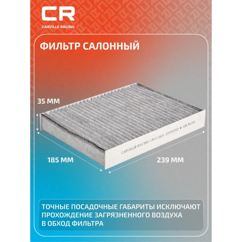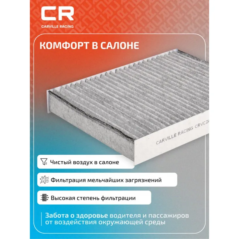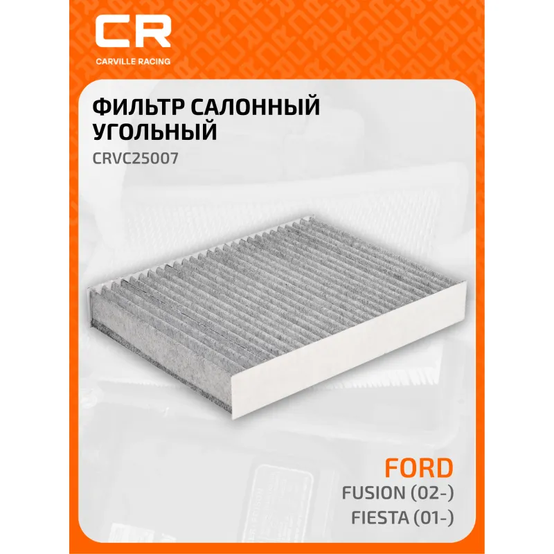 Фильтр салонный угольный для автомобилей Ford Fusion (02-)/Fiesta (01-) Описание: Фильтр салонный для автомобилей Ford Fiesta, Fusion / Форд Фиеста, Фьюжн, угольный фильтр CARVILLE RACING CRVC2433 Салонные фильтры обеспечивают подачу очищенного воздуха в салон автомобиля, эффективно защищают водителя и пассажиров от воздействия пыли, сажи, смога, пыльцы и других дорожных загрязнений. Большое количество складок и большая площадь фильтрации обеспечивают фильтрацию мельчайших загрязнений и большую грязеемкость для длительного срока службы. Устойчивы к воздействию влаги и перепаду температур, предотвращают запотевание окон. Применяемость FORD FUSION, FIESTA. Чтобы убедиться, что деталь подойдет на Ваш автомобиль, пожалуйста, отправьте через кнопку 'Задать вопрос' нам сообщение с VIN-номером вашего автомобиля. Точные посадочные габариты исключают прохождение воздуха в обход фильтра. Угольные фильтры обеспечивают лучшую фильтрацию выхлопных газов и неприятных запахов. Антибактериальные фильтры с дополнительной защитой от бактерий, аллергенов и вирусов. Вся продукция подвергается испытаниям в специализированных лабораториях, аккредитованных стандартами с ISO 17025: 2017 и CNAS-CL01. В нашем магазине, вы найдете широкий ассортимент высококачественных автотоваров, автозапчастей, ремонтные комплекты авто аксессуары, электрооборудование, автогаджеты и девайсы, фильтры и многое другое. Мы гарантируем качество и надежность наших товаров. Характеристики: Артикул: CRVC2433 OEM номера: 1353 269, 1204 464, 1452 330, 1713 178, 256H 19G 244AA, 2S6H-19G244-AA Ширина, мм: 185 Длина, мм: 239 Высота, мм: 35 Исполнение фильтра: Фильтр активированного угля Количество на автомобиль: 1 Комплектация: Фильтр салонный - 1 шт Гарантия: от 1 года.